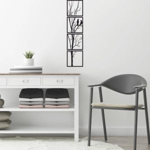 Vertical Tree & Birds Wall Art – 4-Panel Laser Cut Acrylic Set (NZ Made)