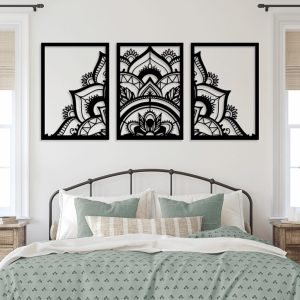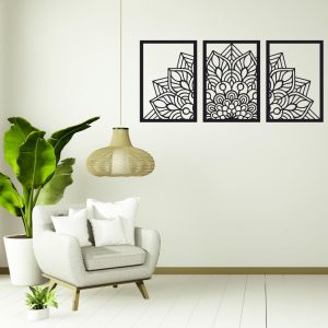Mandala Wall Art – 3-Piece Laser Cut Acrylic Panel (Gloss Black or White)