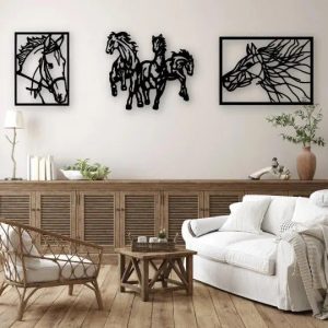 Horse Line Art – 3-Piece Laser Cut Acrylic Wall Art (Gloss Black or White)