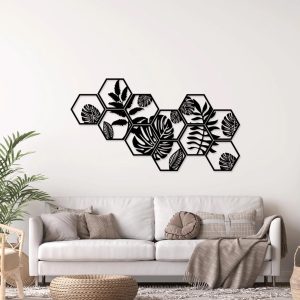 Nature-Inspired Hexagon Wall Art – Leaf Pattern Acrylic Décor NZ