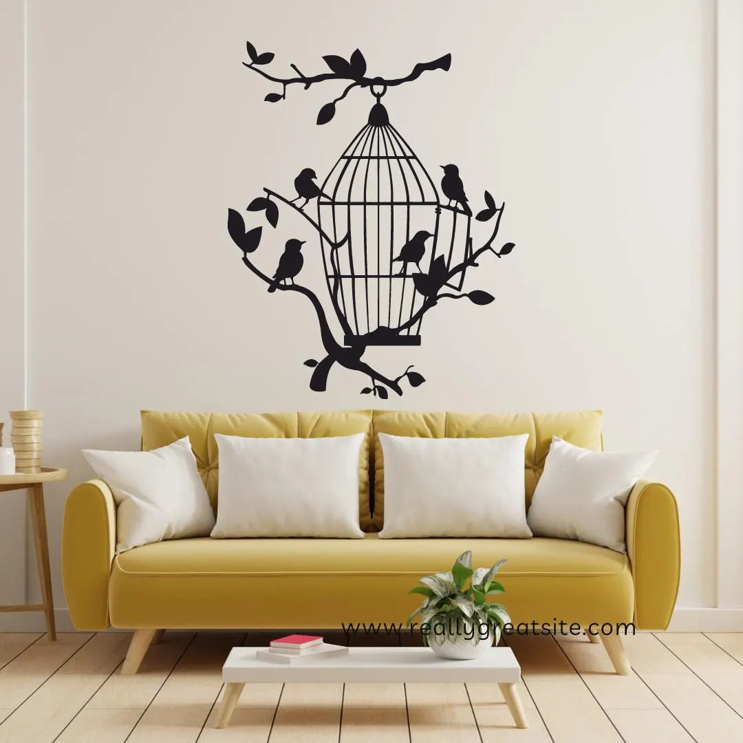 Nature-Inspired Wall Art – Elegant Birds & Cage Scene