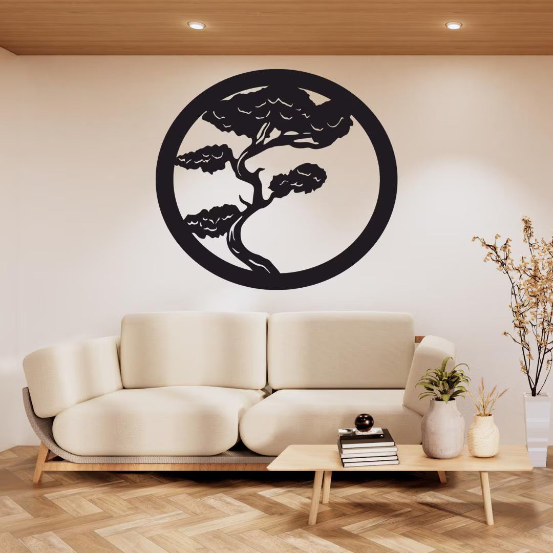 Bring balance and serenity to your space with this Bonsai Tree Wall Art, framed within a perfect circle. Inspired by nature and minimalist Japanese design, this piece is laser cut from 3mm gloss acrylic and fits beautifully in modern, zen, or neutral-toned spaces.