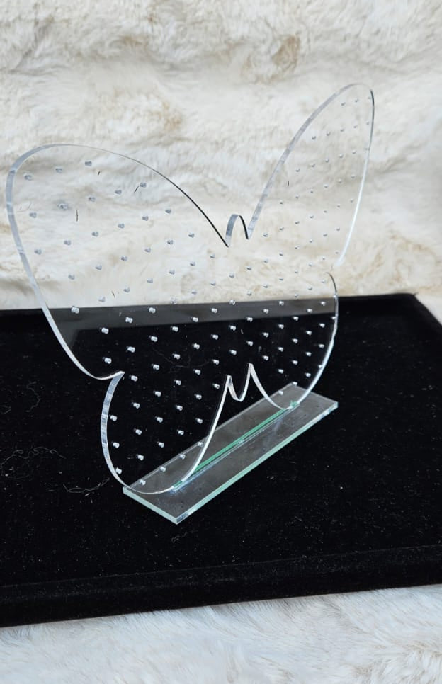 Let your jewellery take flight with our Butterfly Acrylic Earring Display Stand, precision laser-cut from premium clear acrylic. With over 50 neatly aligned holes, this “earring holder stand” beautifully showcases studs, hoops, and small drop earrings, transforming any dressing table, boutique counter, or market stall into a stylish display. The lightweight, slot-in design assembles in seconds—no tools required—and comes with a sturdy base for reliable support. Perfect for personal vanities, jewellery retailers, wedding favors, and gift-giving.