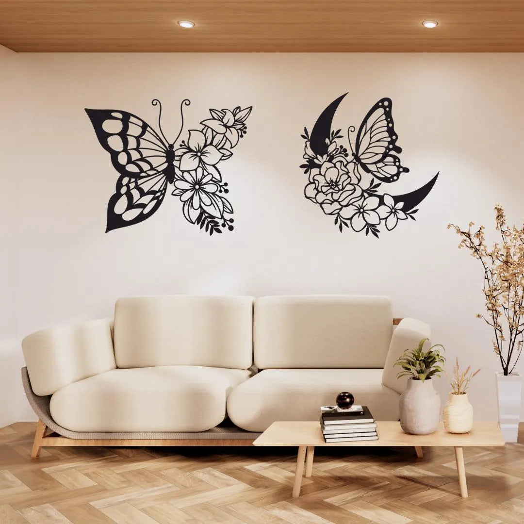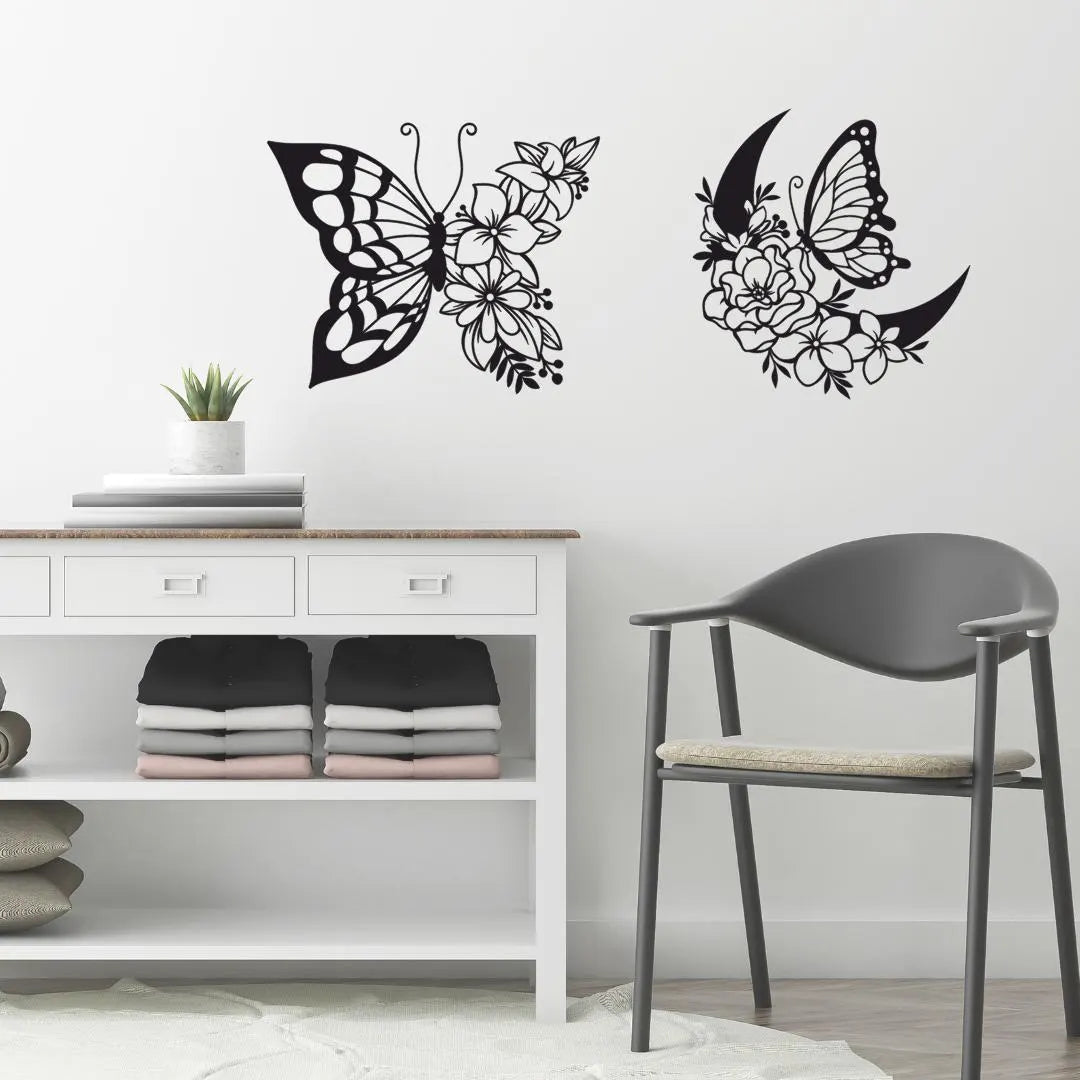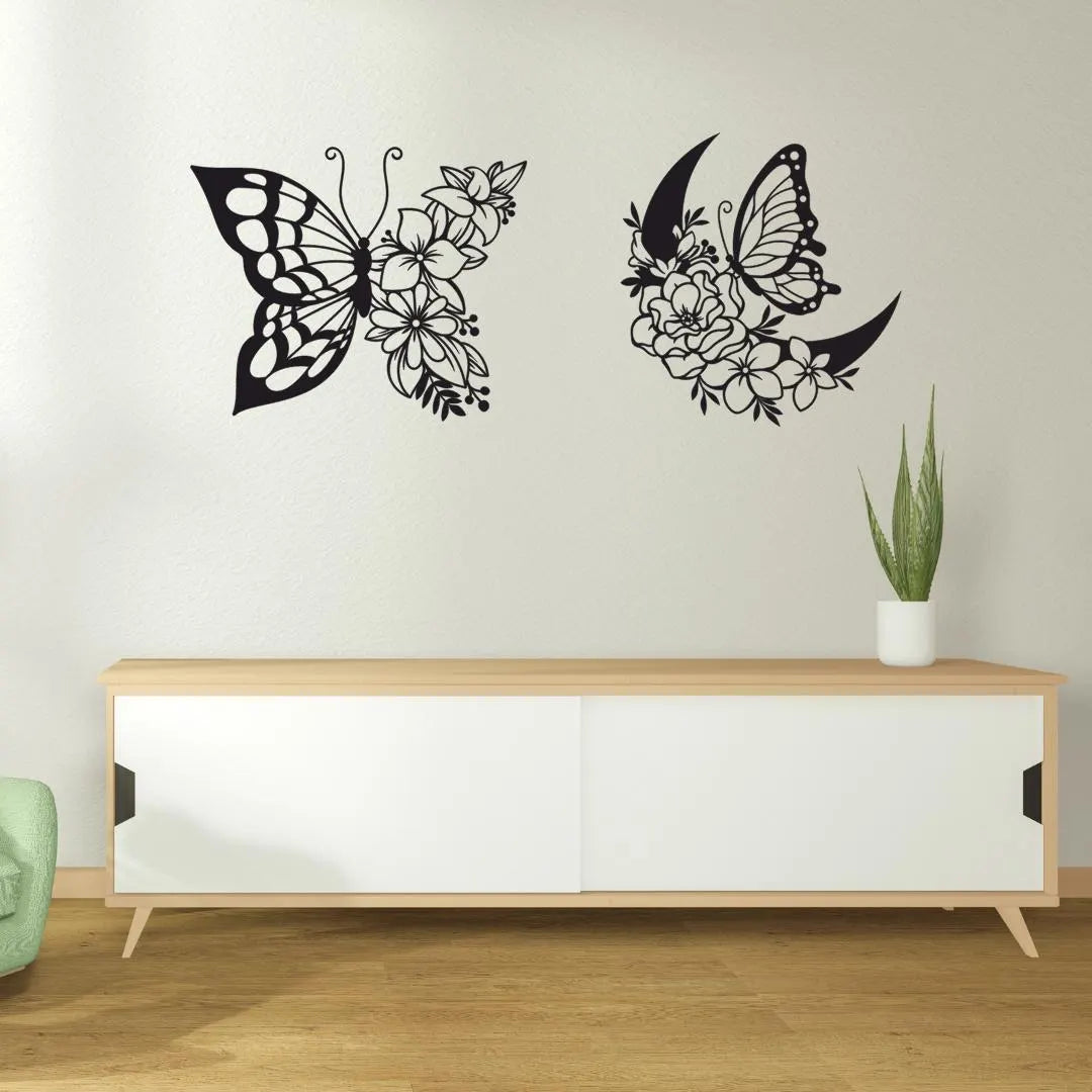 Bring harmony and elegance to your space with this Butterfly & Moon Floral Wall Art Set, a 2-piece laser cut collection crafted from premium 3mm gloss acrylic. Featuring a graceful butterfly filled with floral detailing and a crescent moon wrapped in blossoms, this set is ideal for bedrooms, lounges, or gifting.