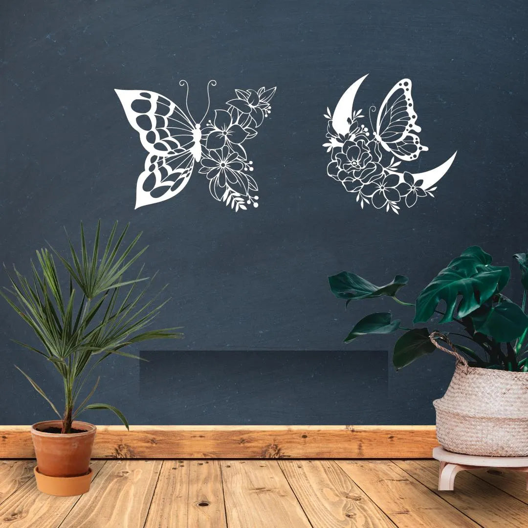 Butterfly & Moon Floral Wall Art Set – Laser Cut Acrylic (NZ Made)