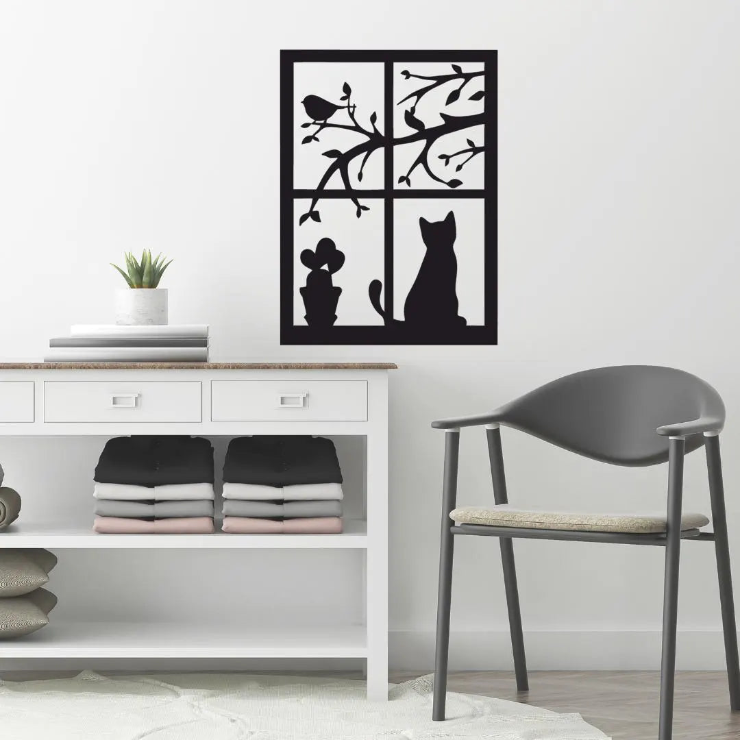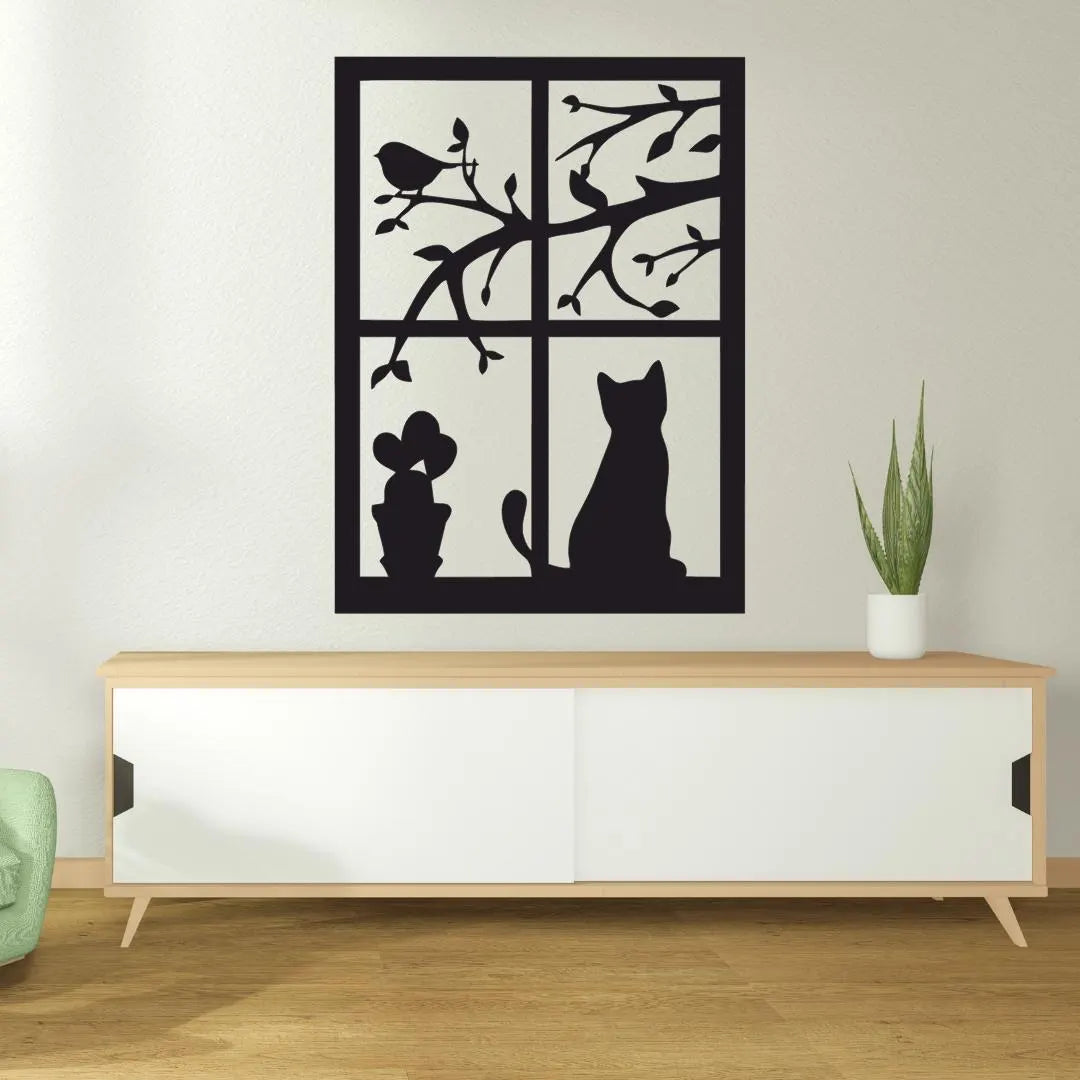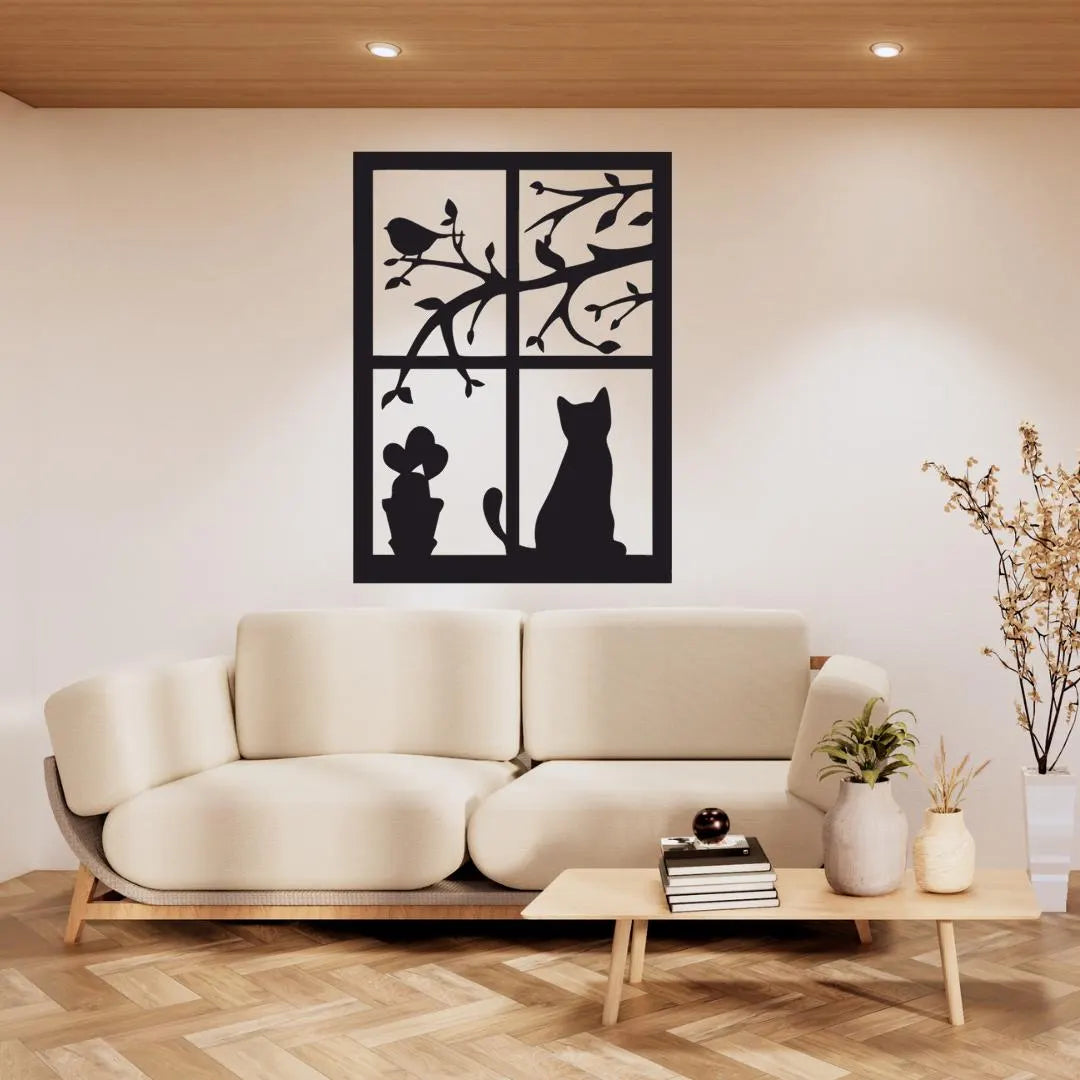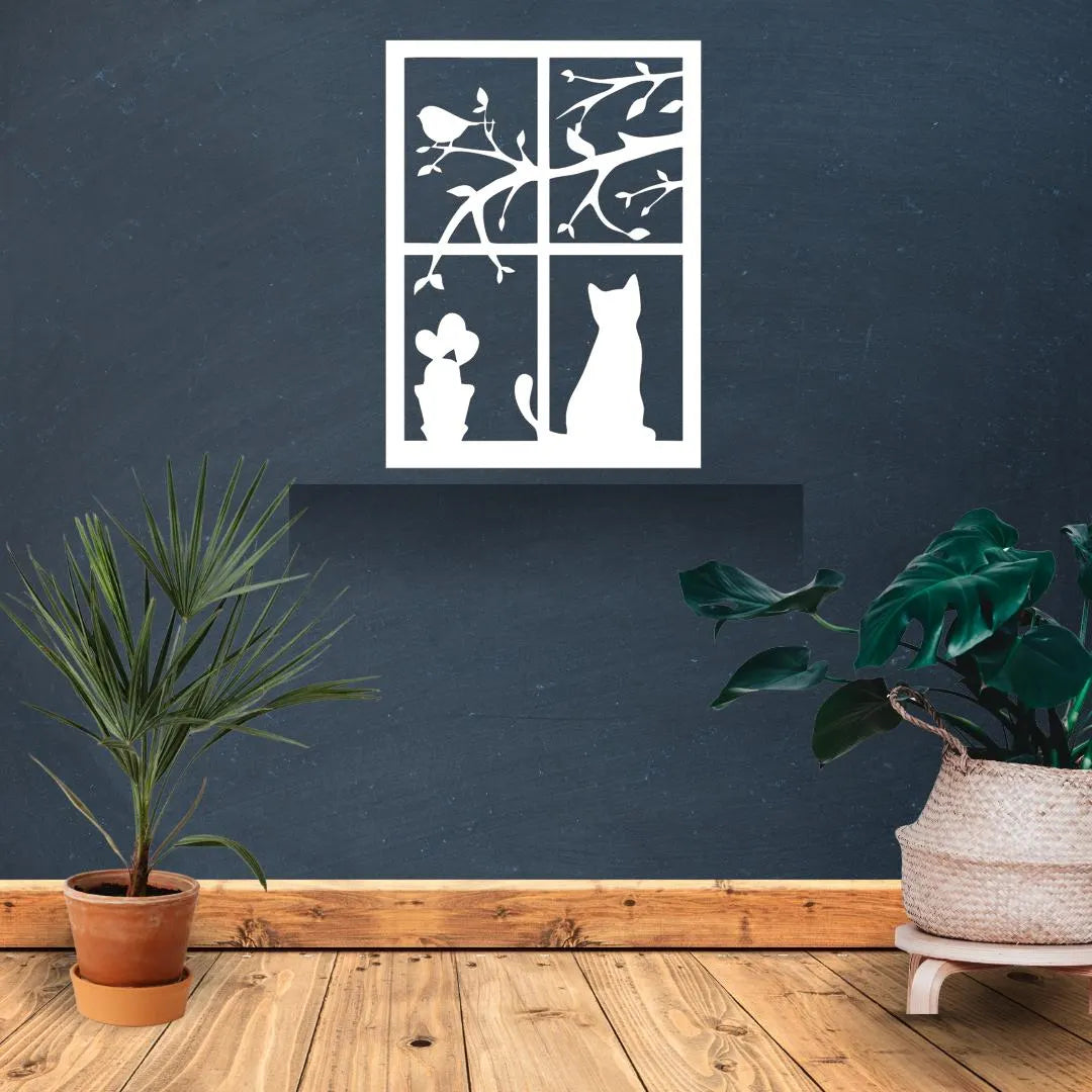 Bring a cozy, whimsical view into your home with this Cat & Bird Window Scene Wall Art, a beautiful laser-cut silhouette capturing a peaceful cat watching a bird on a branch. Crafted from 3mm gloss acrylic, it adds charm and storytelling to bedrooms, living rooms, or reading nooks.