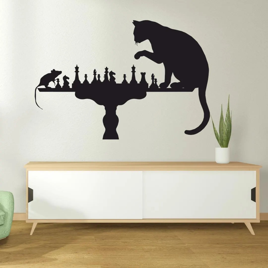 Cat Playing Chess Acrylic Wall Art – Whimsical Game Décor NZ