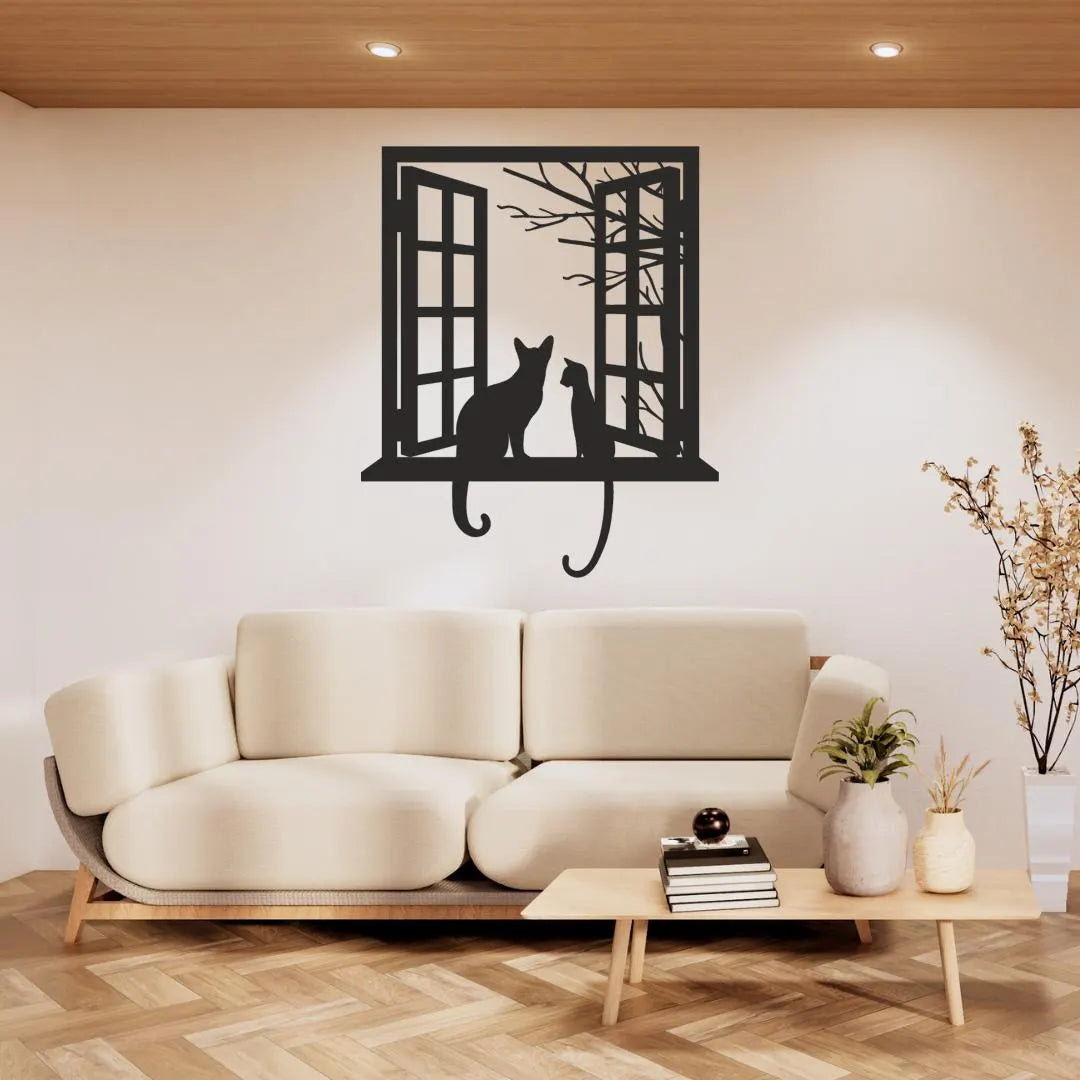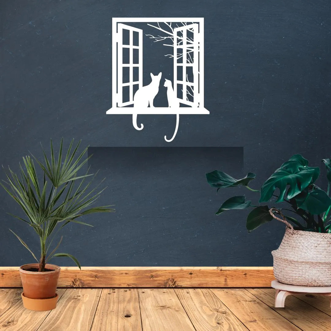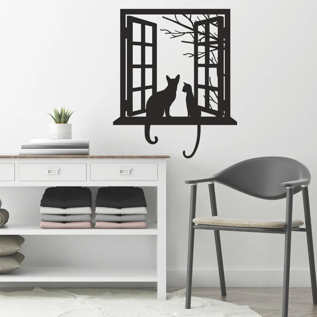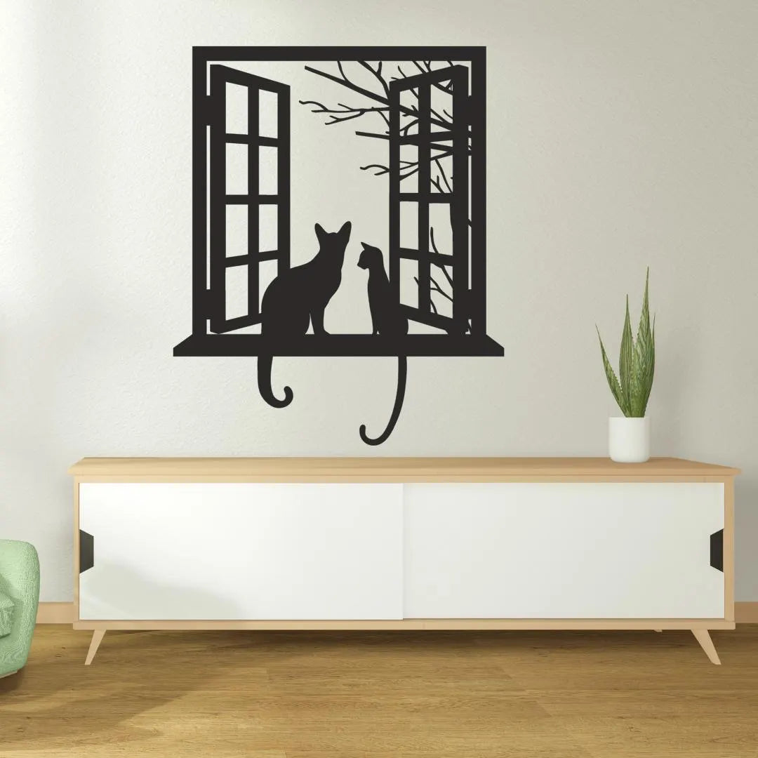 Invite curiosity and charm into your home with Cats at Window Acrylic Wall Art, a precision laser-cut acrylic hanging featuring two playful cat silhouettes perched on an open window sill against a stylized tree backdrop. Crafted from premium 3 mm gloss acrylic in New Zealand by Bhavya Phull, this “cat wall art” piece brings “whimsical home décor” flair and “pet lover accents” to any living room, bedroom, or study. Perfect as a “gift for cat lovers” or an eye-catching accent in cafés, offices, and nurseries.