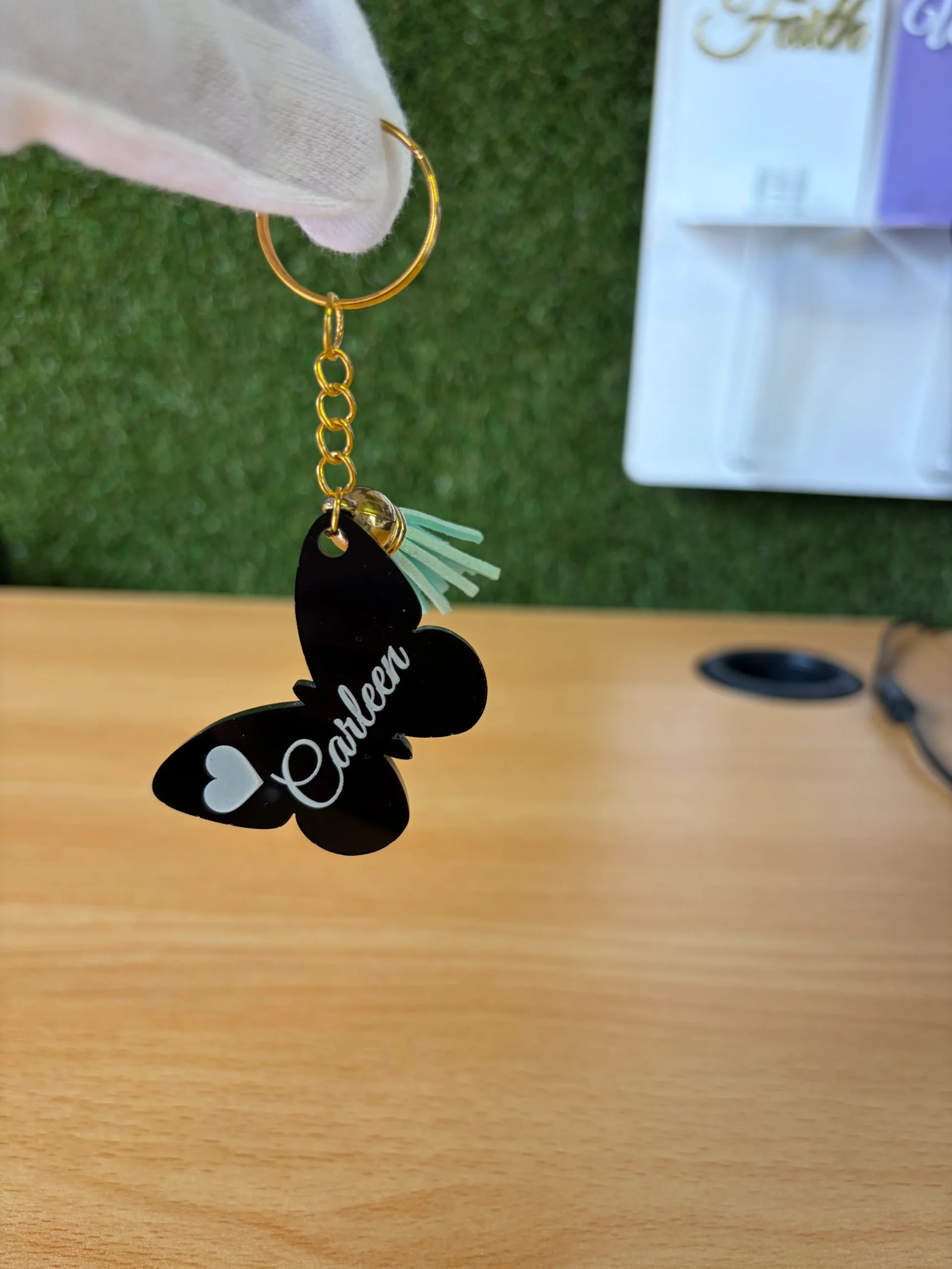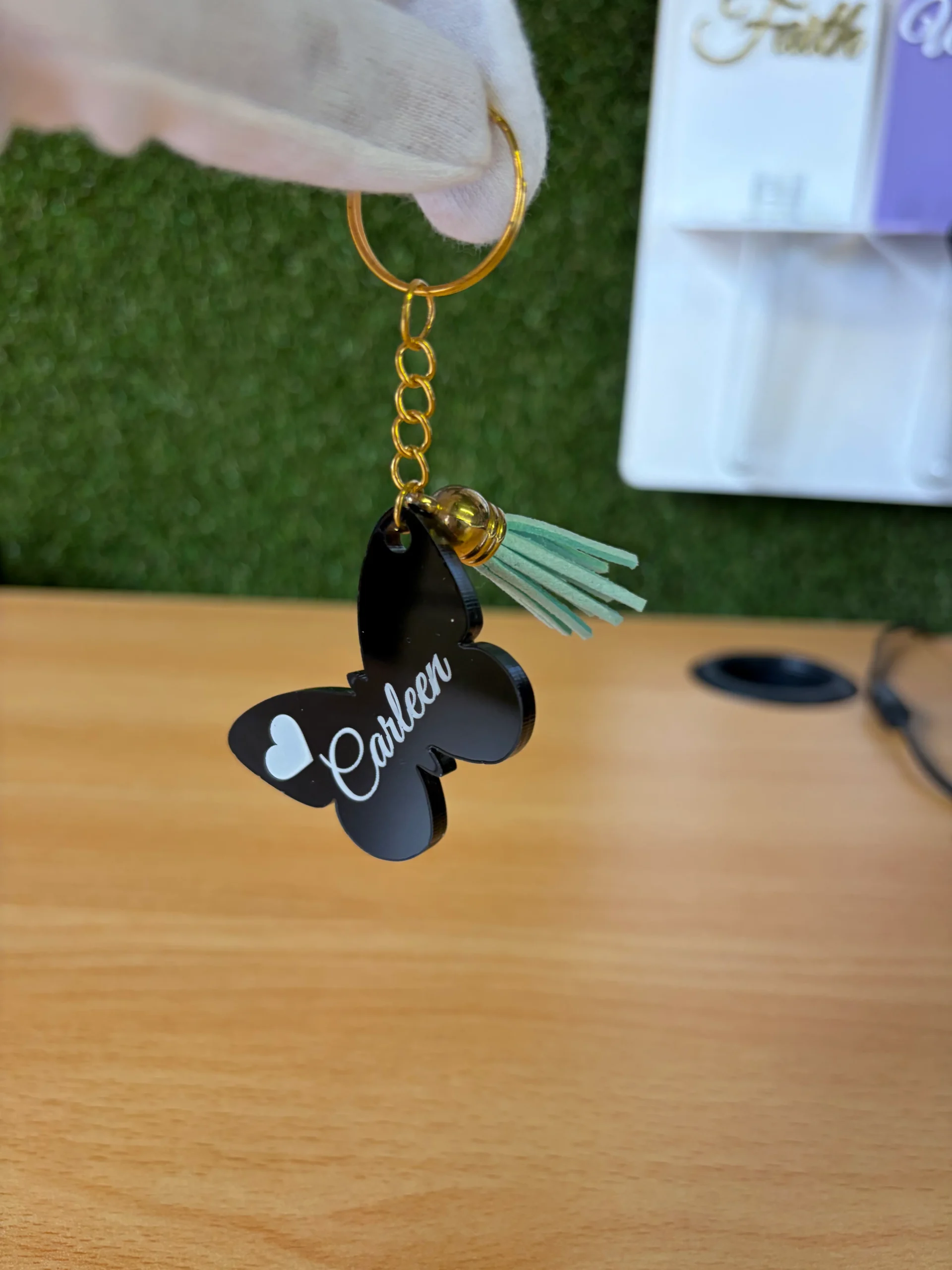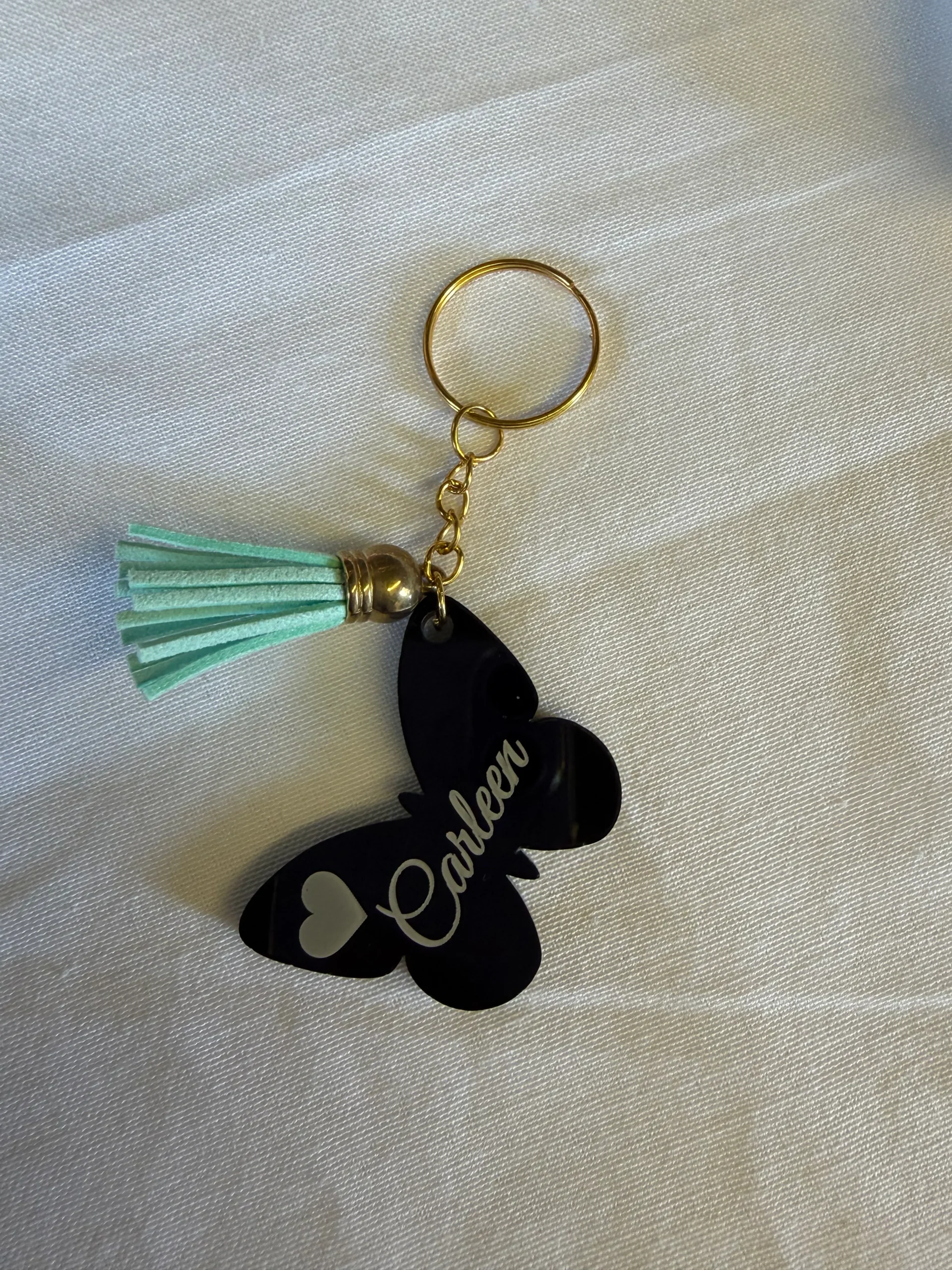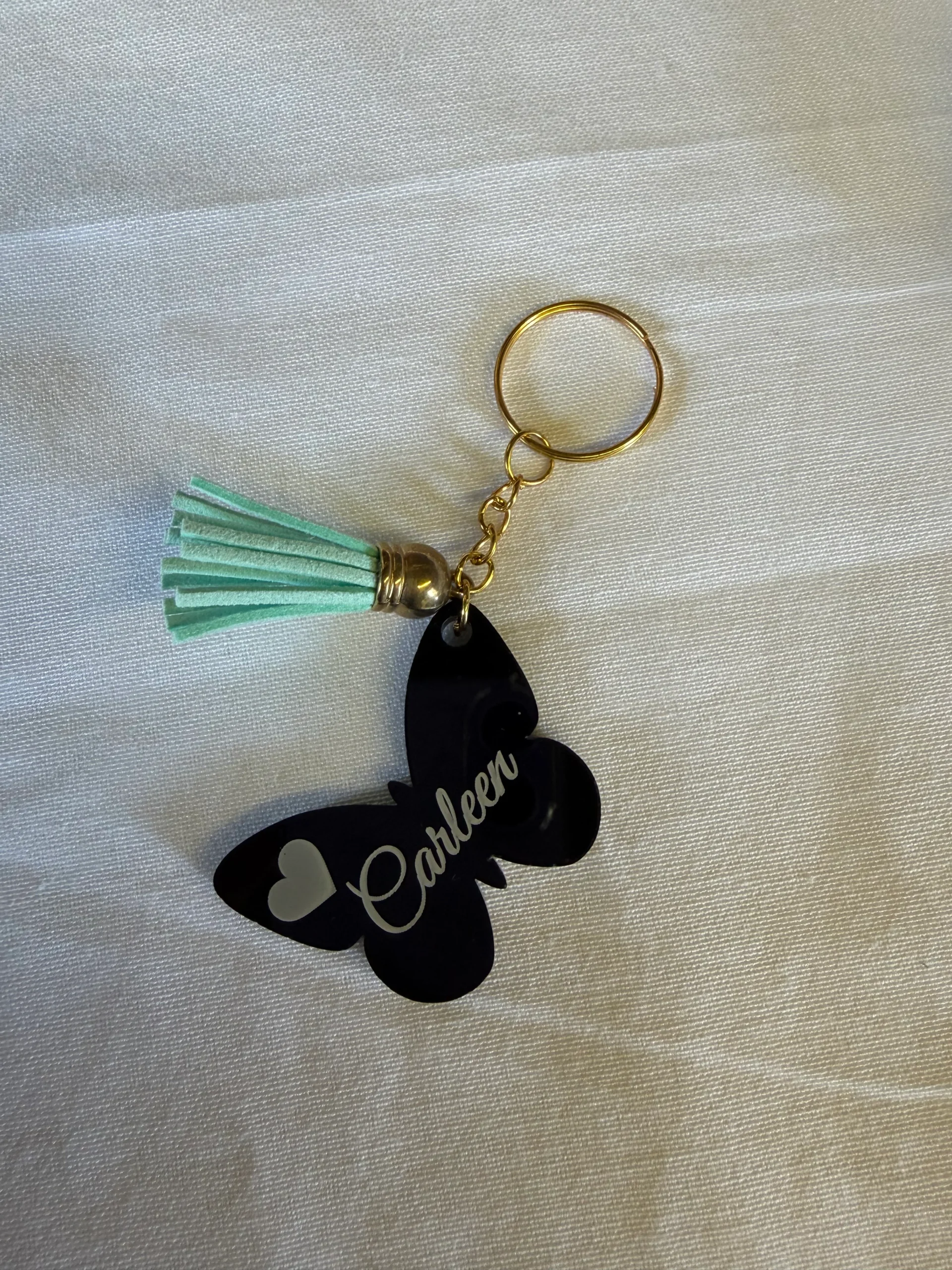 Crafted from premium 3 mm glossy black acrylic, each butterfly keychain is luxuriously smooth, lightweight, and finished with a durable gold metal keyring and matching chain. The name engraving is completed using high-definition laser technology, ensuring a permanent, scratch-resistant finish that delivers long-term value.