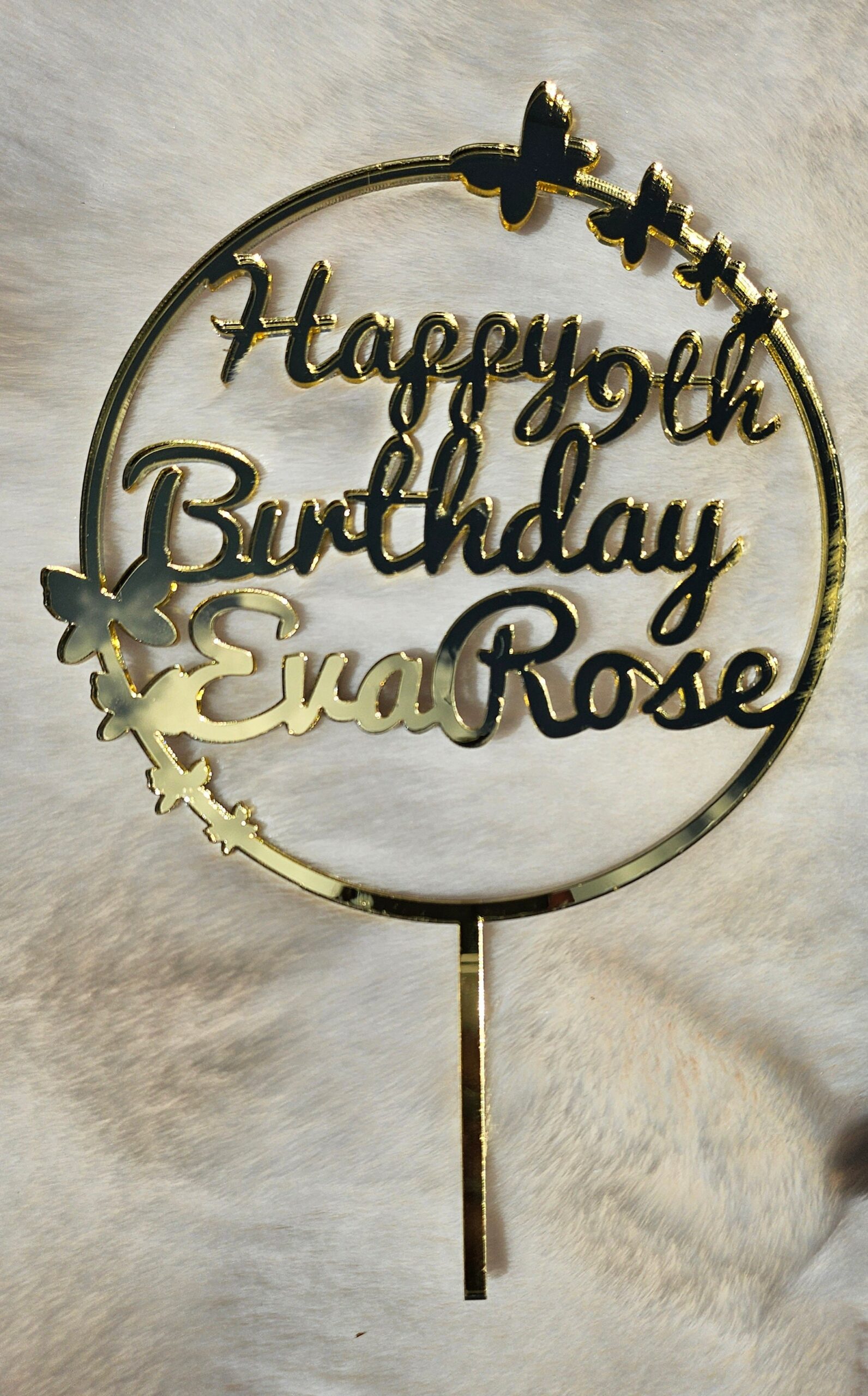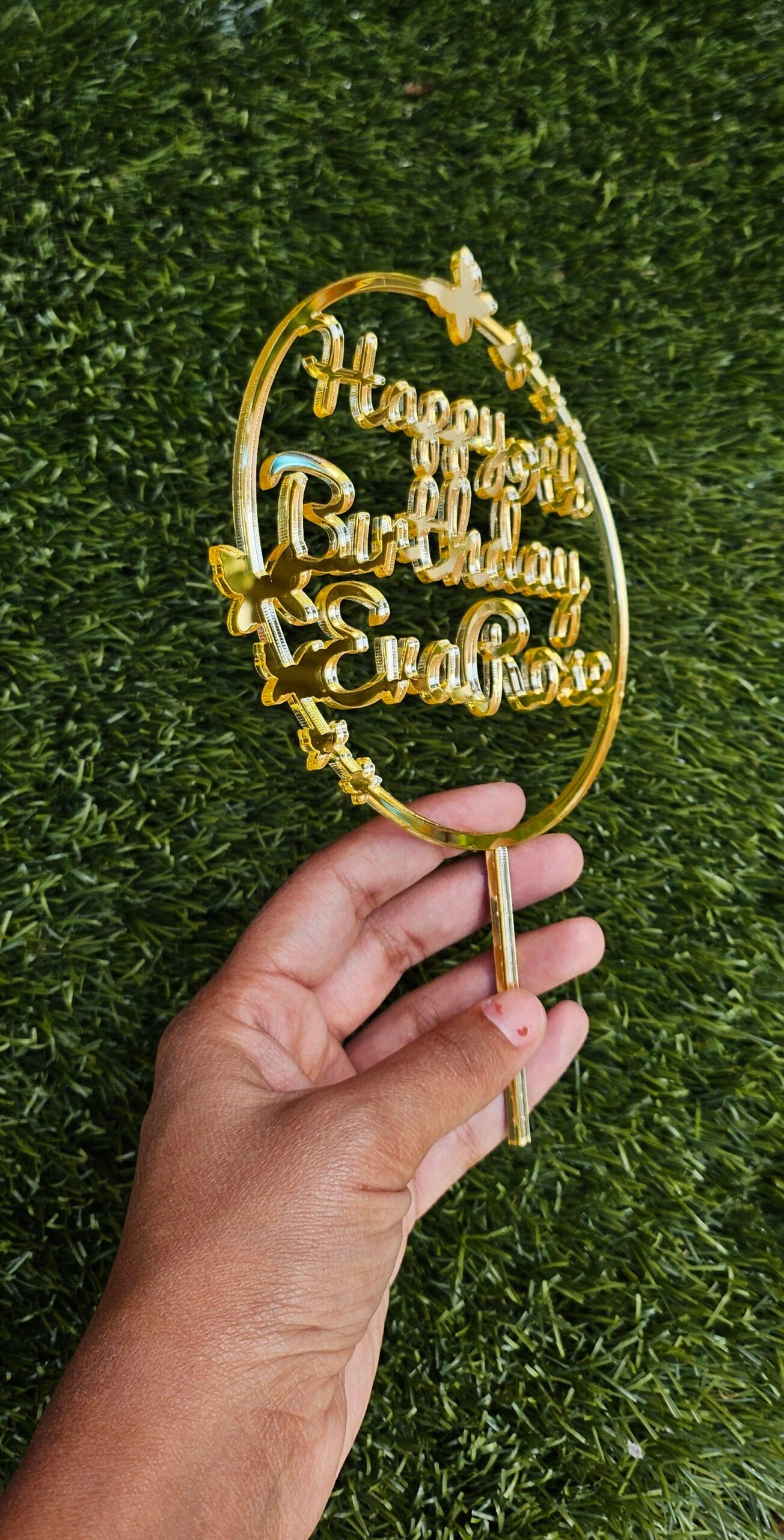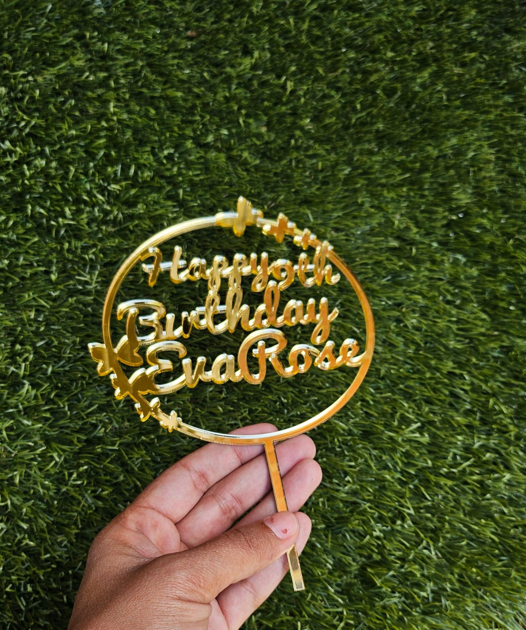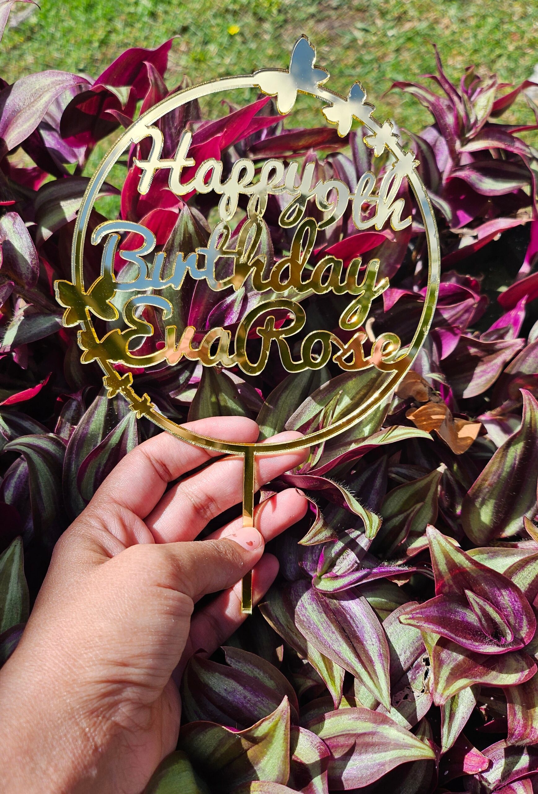 Make your celebration truly special with our personalized butterfly-design cake topper! Beautifully laser-cut from premium mirror-gold acrylic, this topper adds instant elegance and sparkle to any cake.