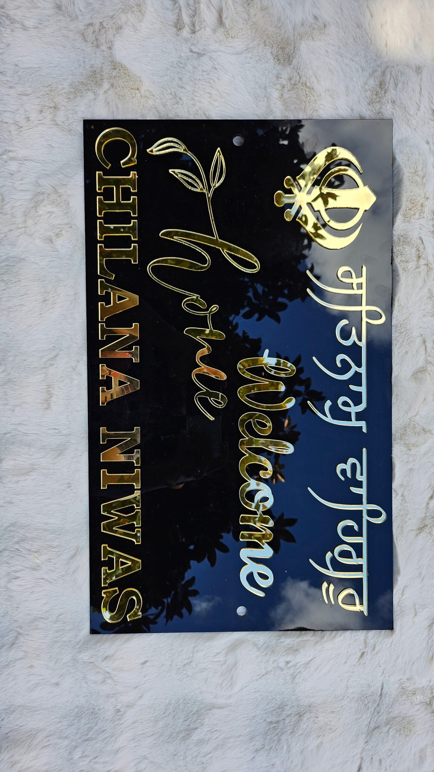 Honor your heritage with this custom Sikh “Welcome Home” mirror-acrylic sign, beautifully designed with the Khanda symbol and personalized family name. Crafted for elegance and spiritual warmth, this sign transforms any entrance into a space of pride, culture, and positive energy.