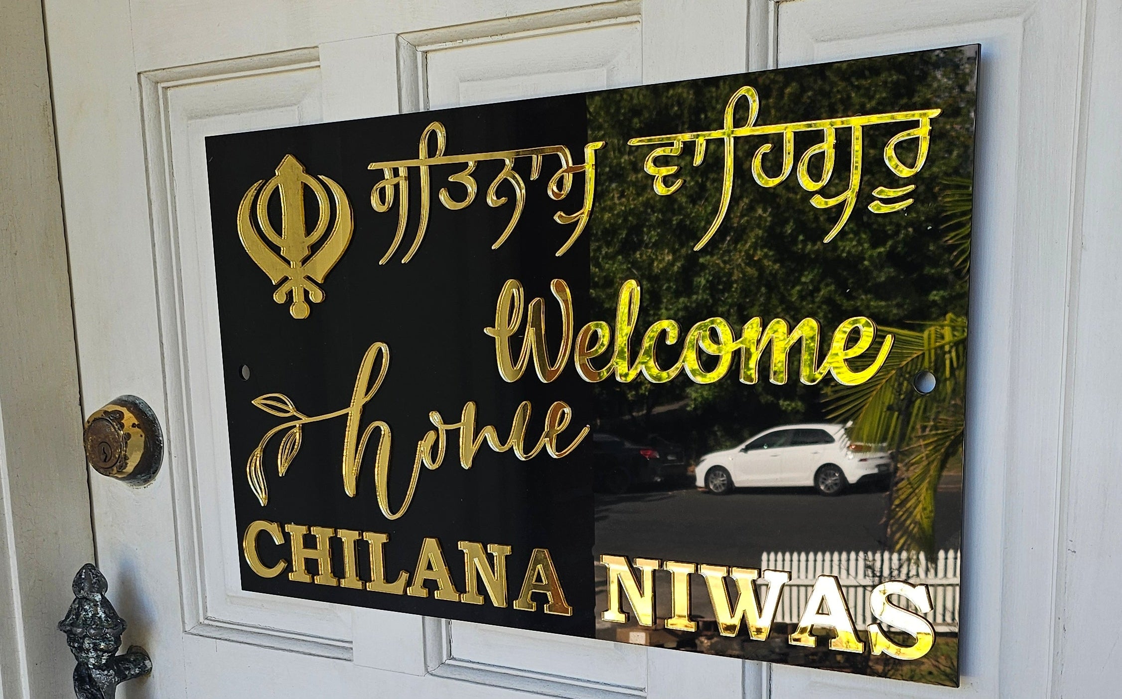 Custom Sikh Welcome Home Sign – Khanda Design • Mirror Gold Acrylic | Made in NZ
