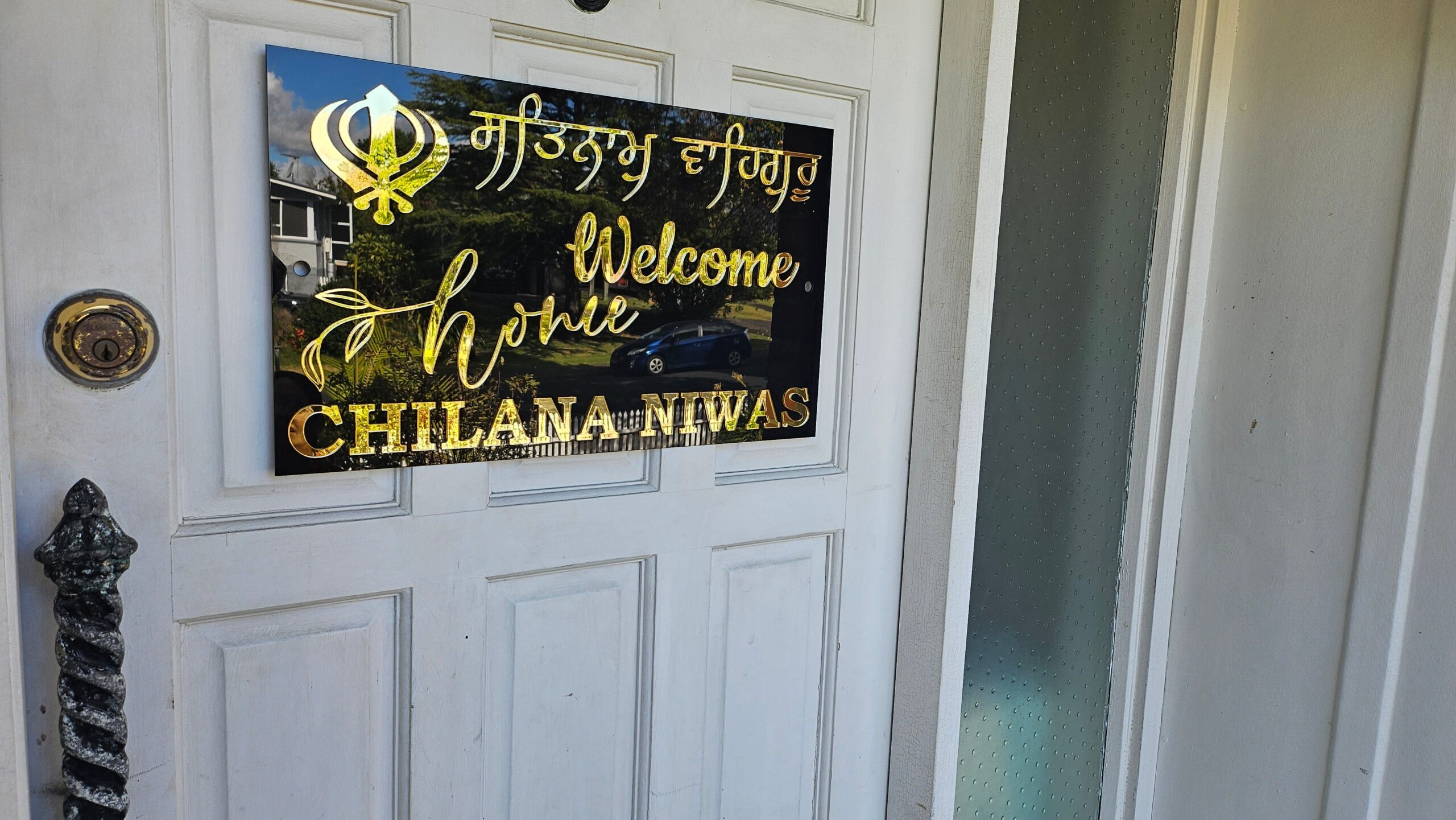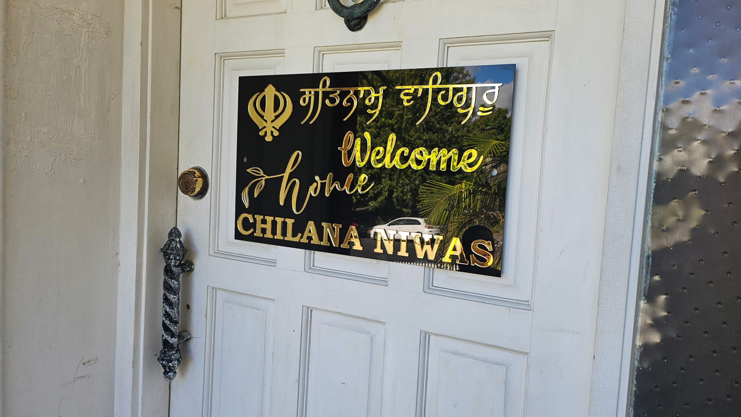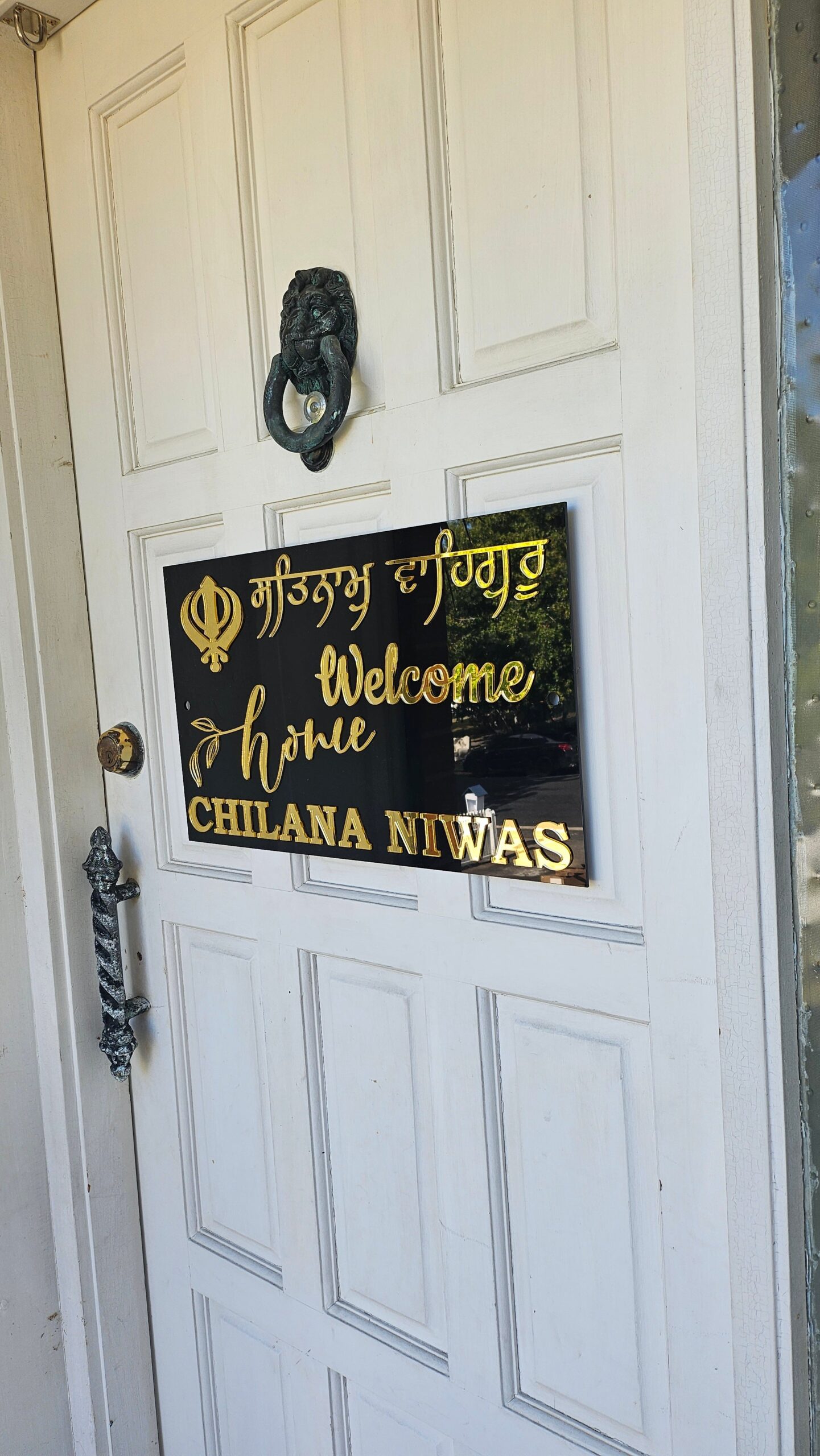 ✔️ Design Includes: Khanda Sikh symbol, “Welcome Home” script, customized Punjabi text, and family name