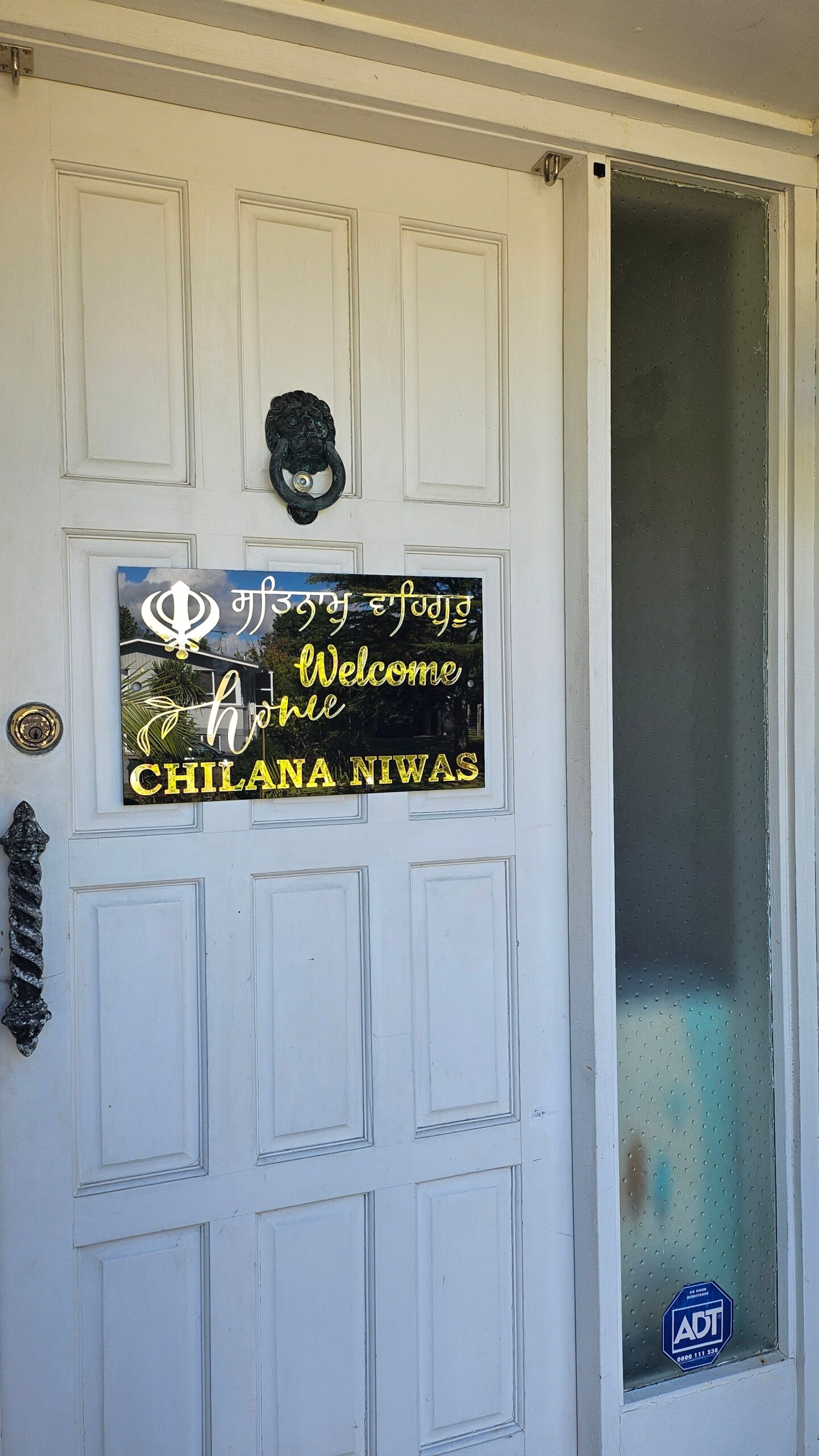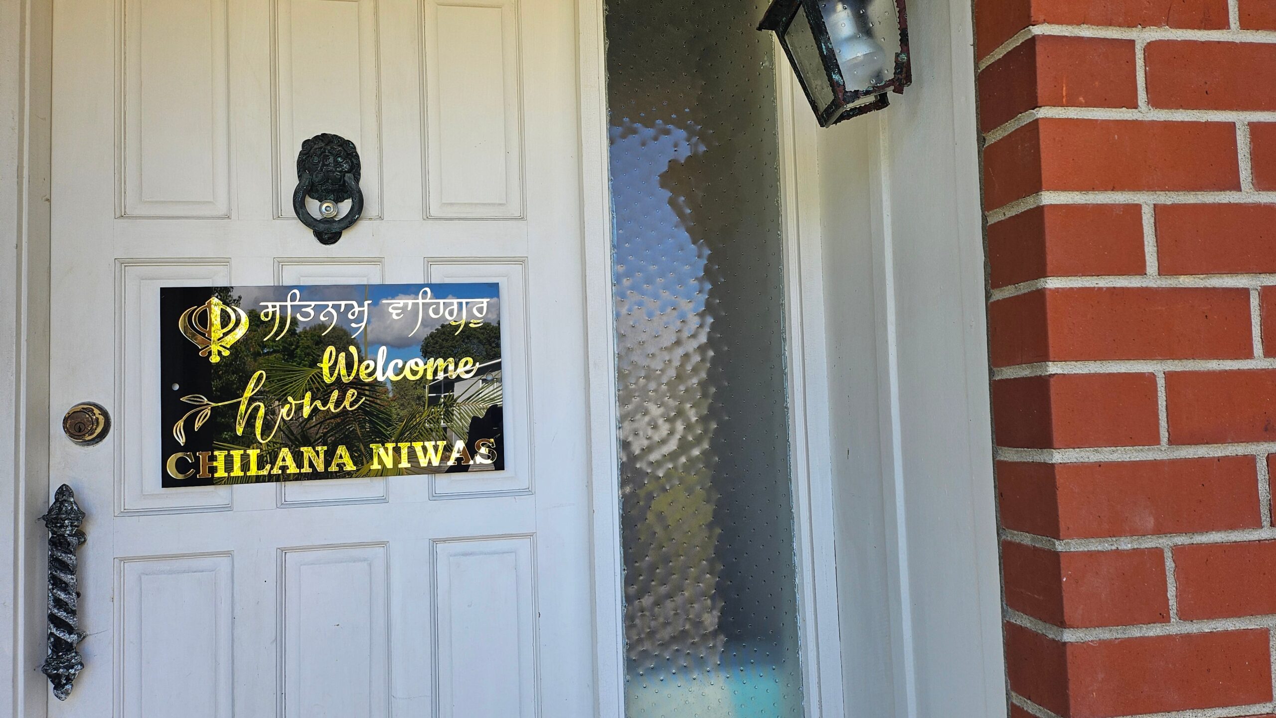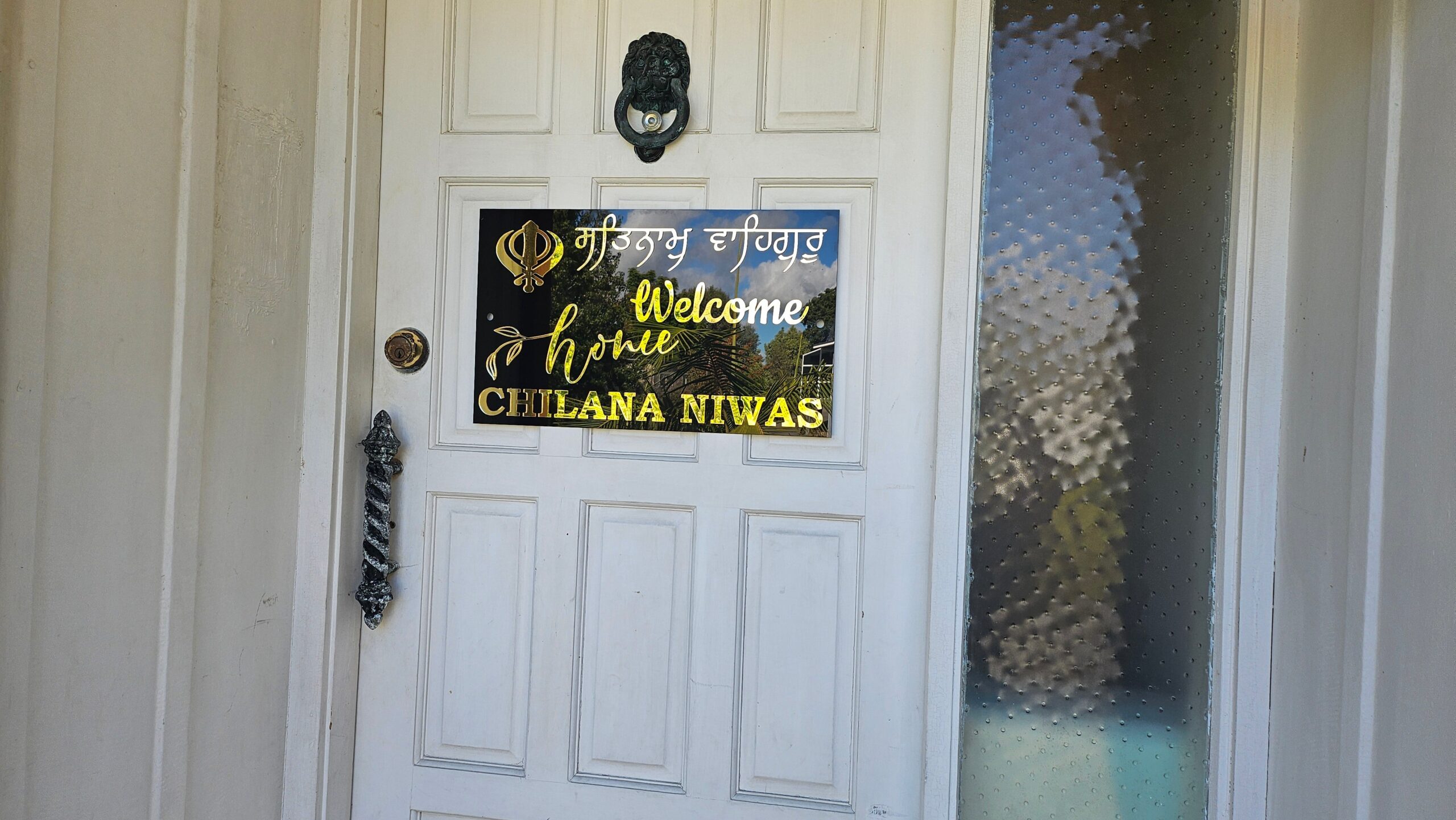 ✔️ Design Includes: Khanda Sikh symbol, “Welcome Home” script, customized Punjabi text, and family name