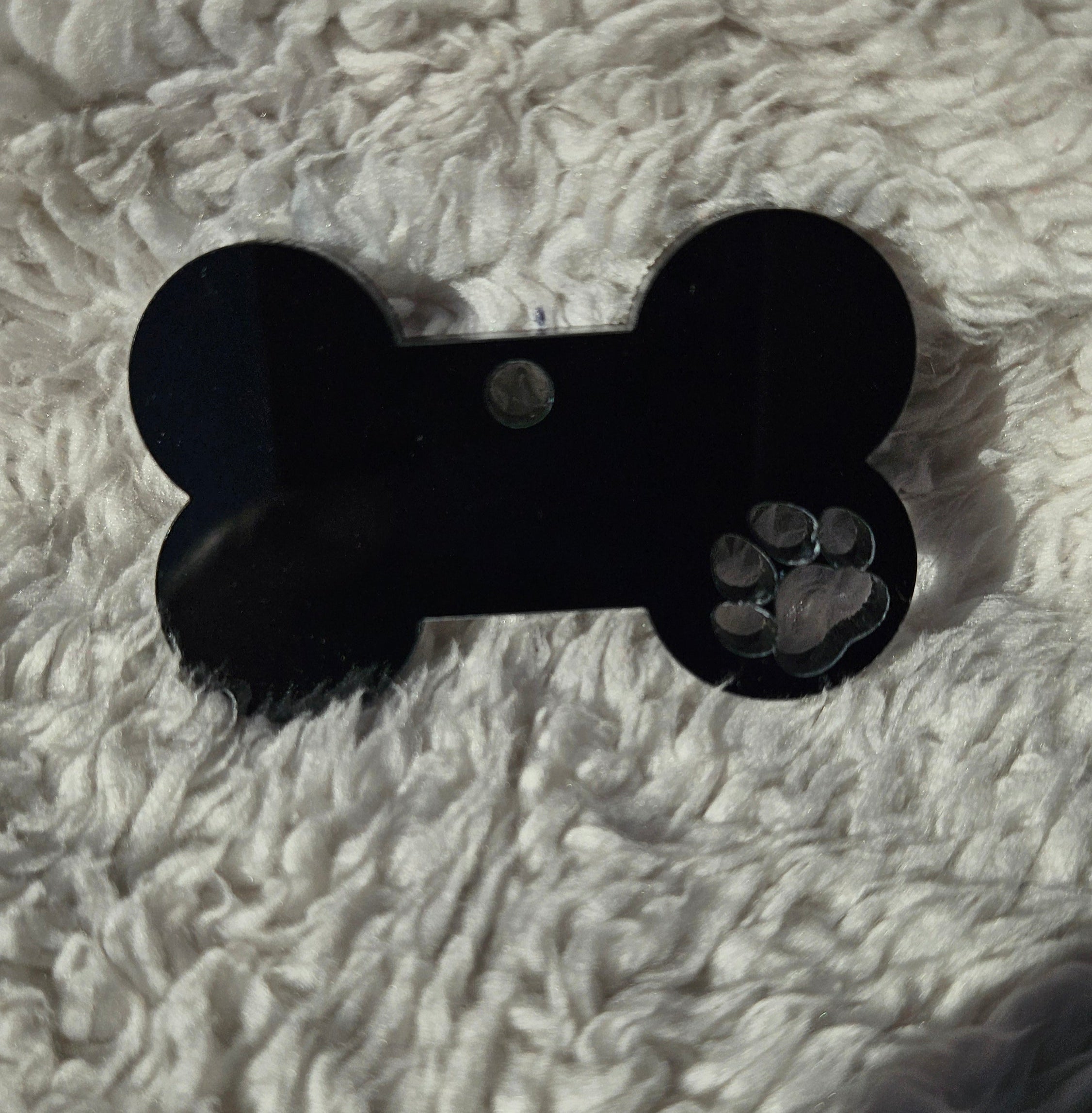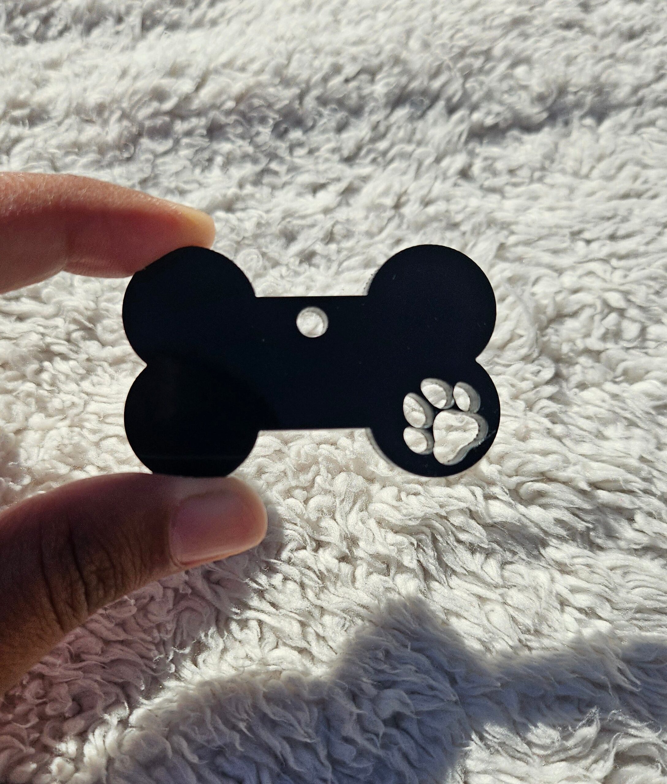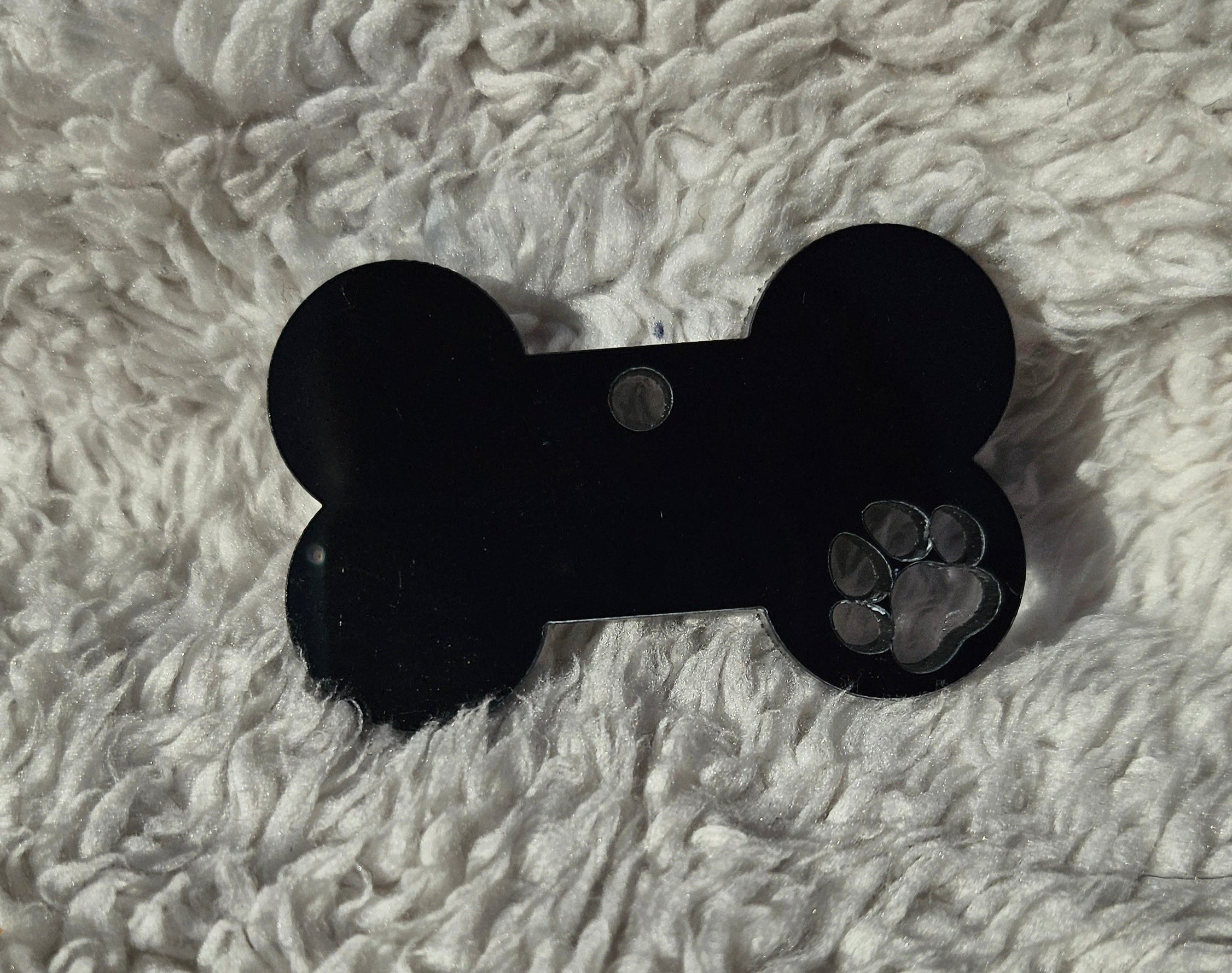 Add a unique touch to your pet’s identity with our Cut-Out Paw Print Pet Tag, designed in a bold bone shape from sleek black acrylic. The standout feature? A precision-cut paw print that adds charm while keeping the look minimal and stylish.