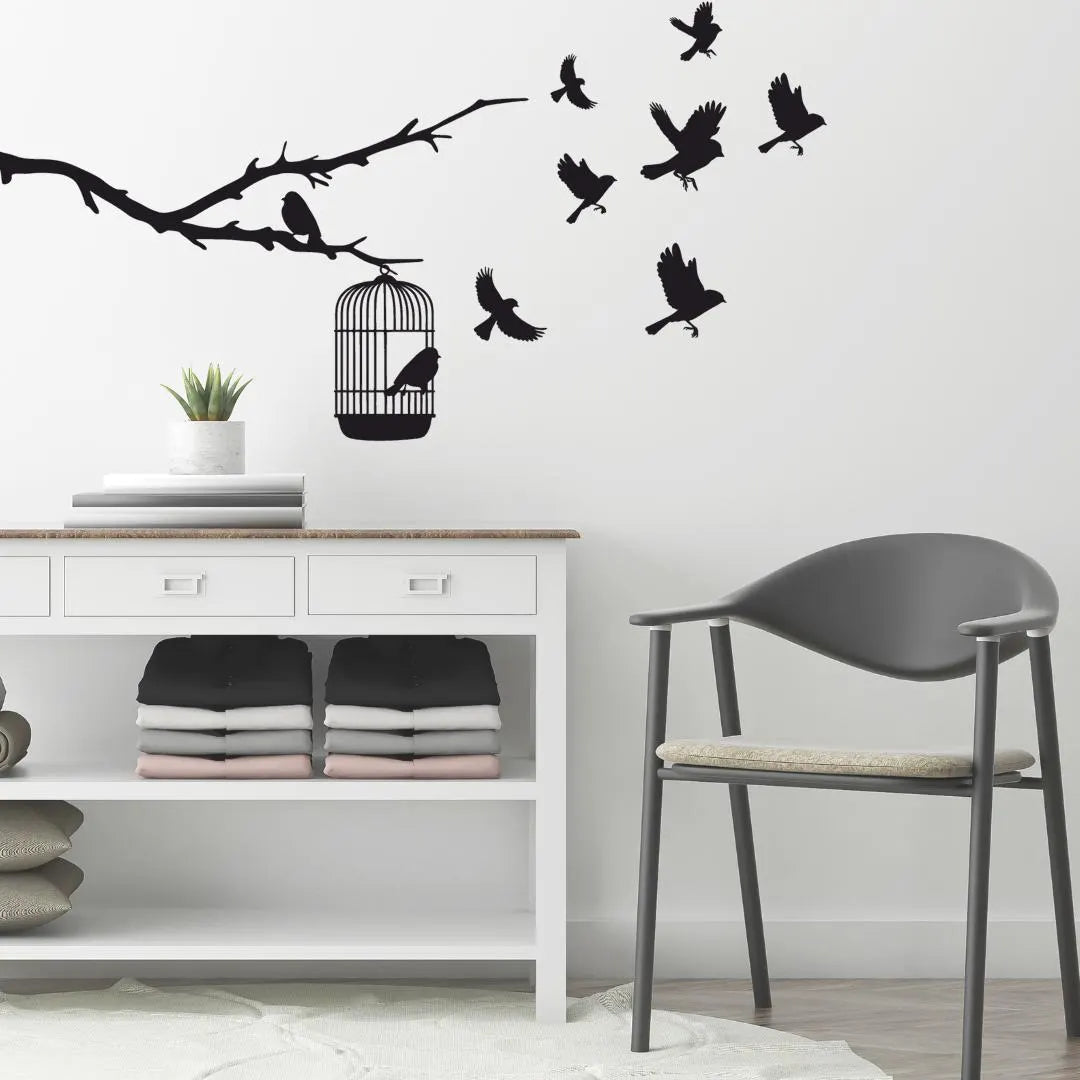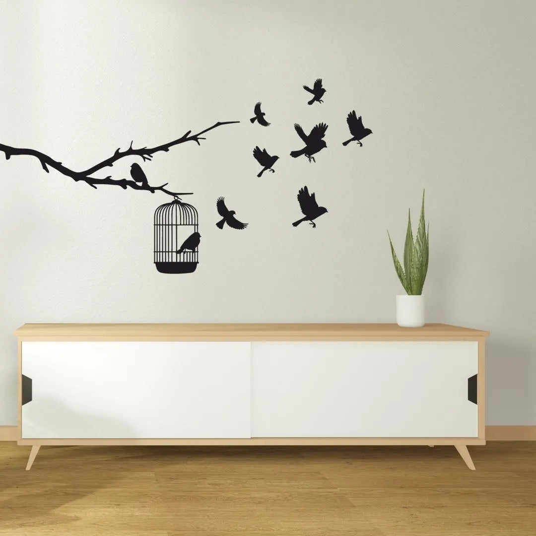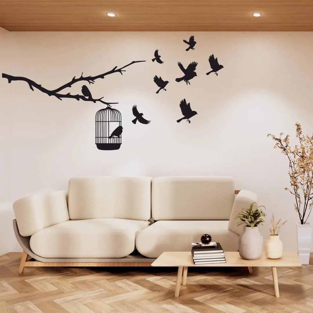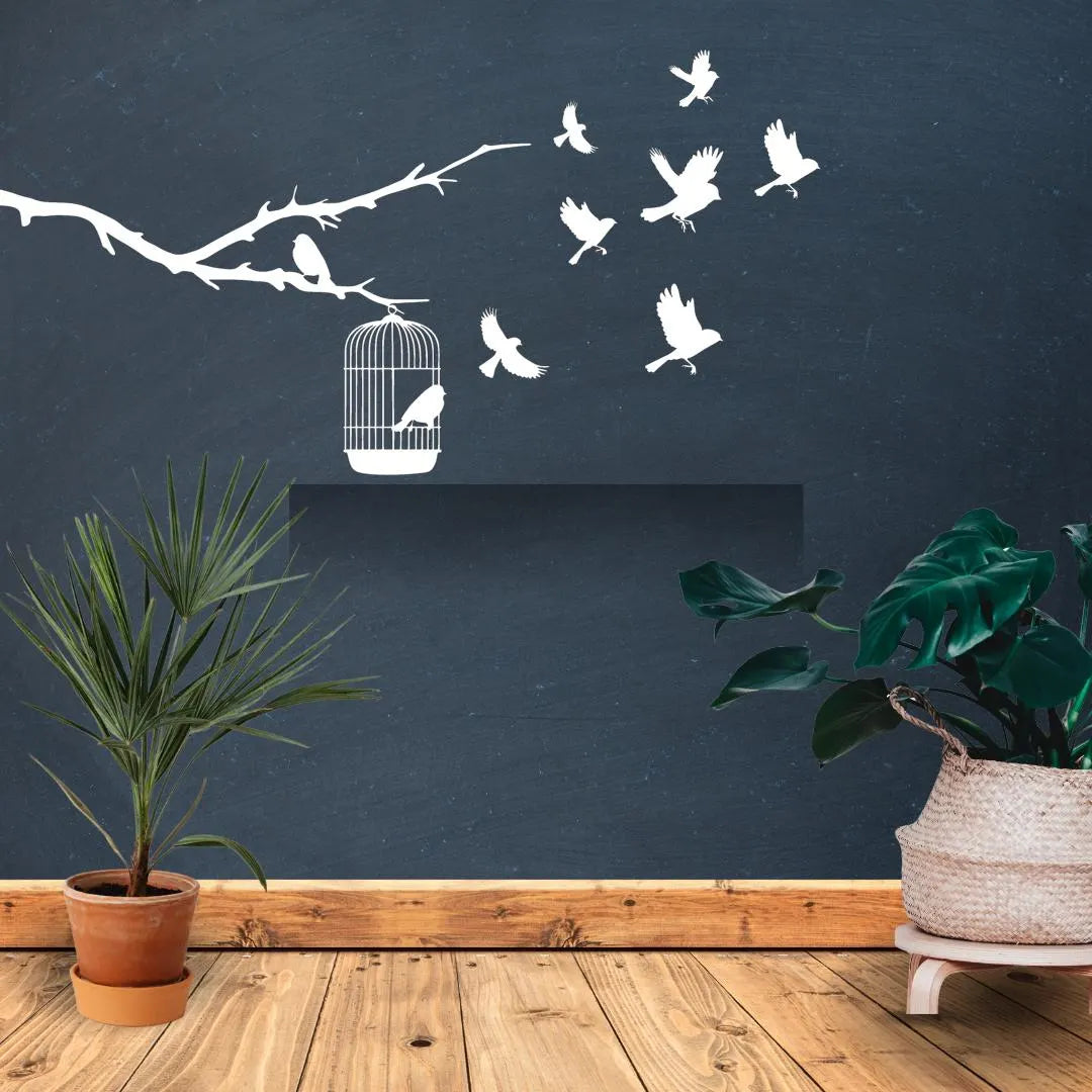 Symbolizing liberation, growth, and letting go, this Freedom Birds Wall Art captures birds taking flight from an open cage on a delicate tree branch. Crafted from 3mm gloss acrylic, this multi-piece layout brings motion and story to your space.