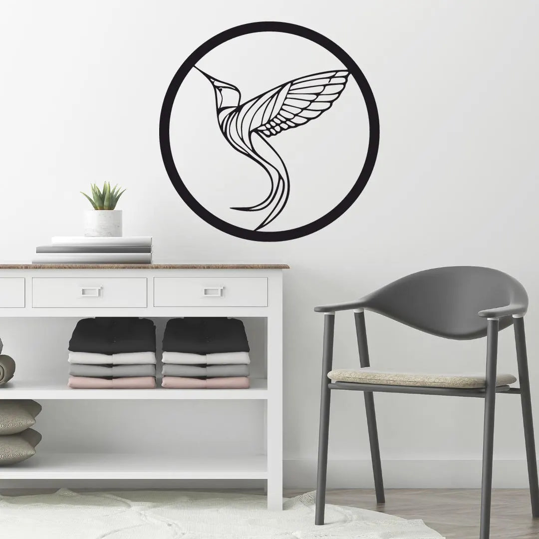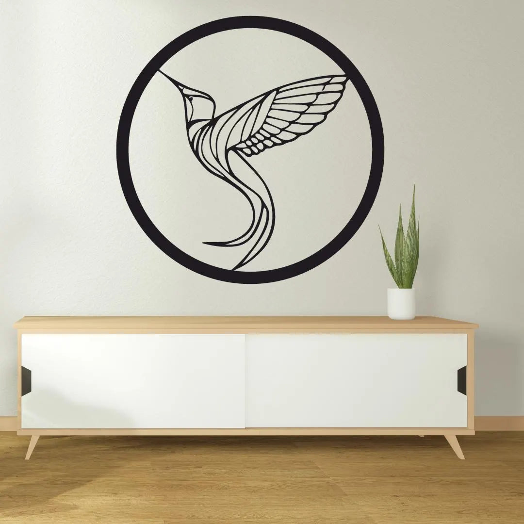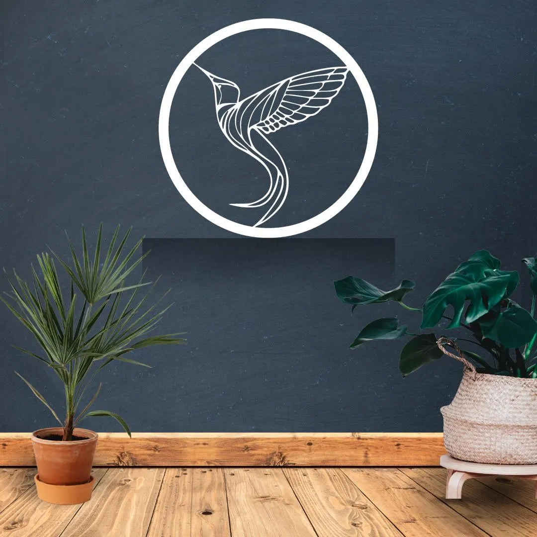 Add elegance and lightness to your space with this Hummingbird Wall Art, laser-cut from premium 3mm gloss acrylic. The flowing lines and circular frame capture the grace of a hummingbird mid-flight — a symbol of energy, joy, and beauty.
