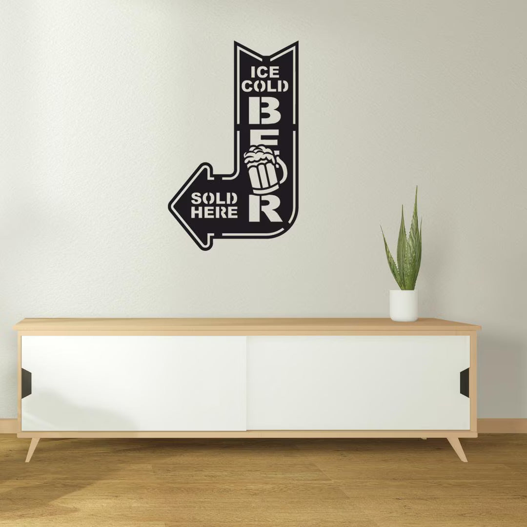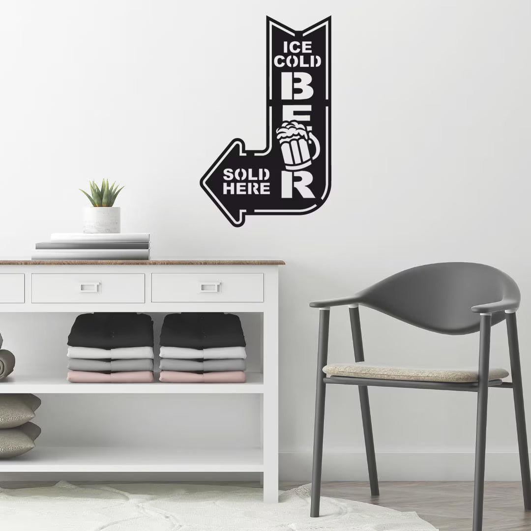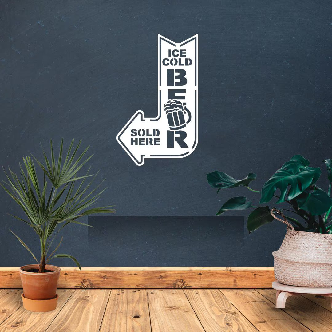 Design: Fun “Ice Cold Beer Sold Here” arrow with beer mug graphic