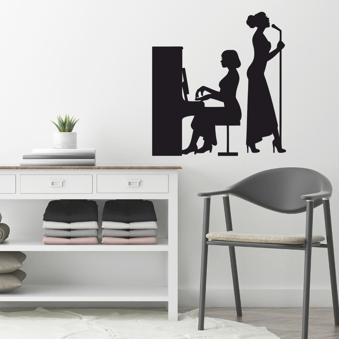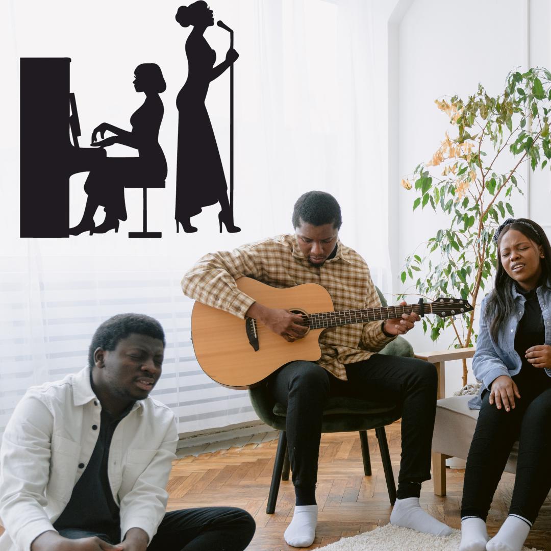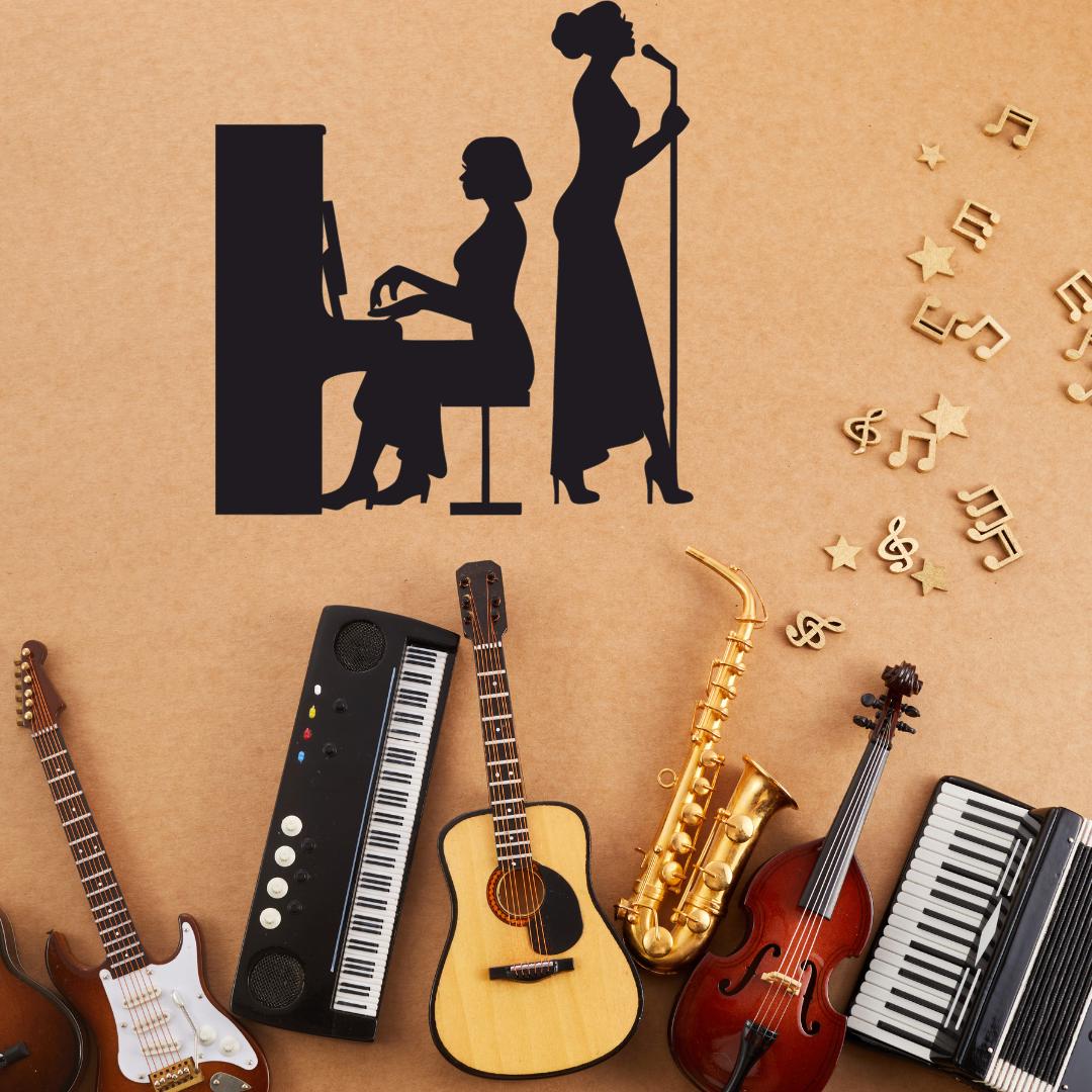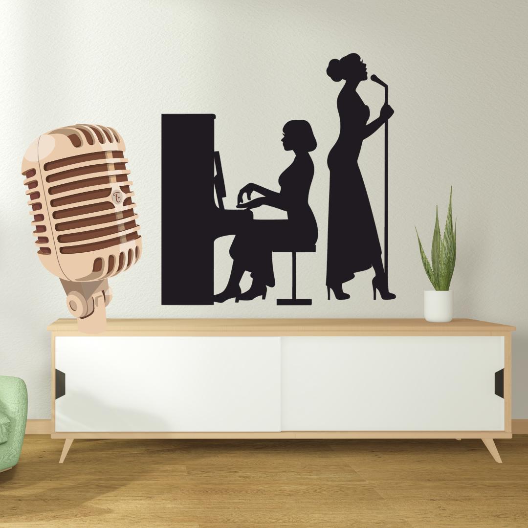 Design: Seated pianist and standing vocalist silhouettes for a striking concert scene