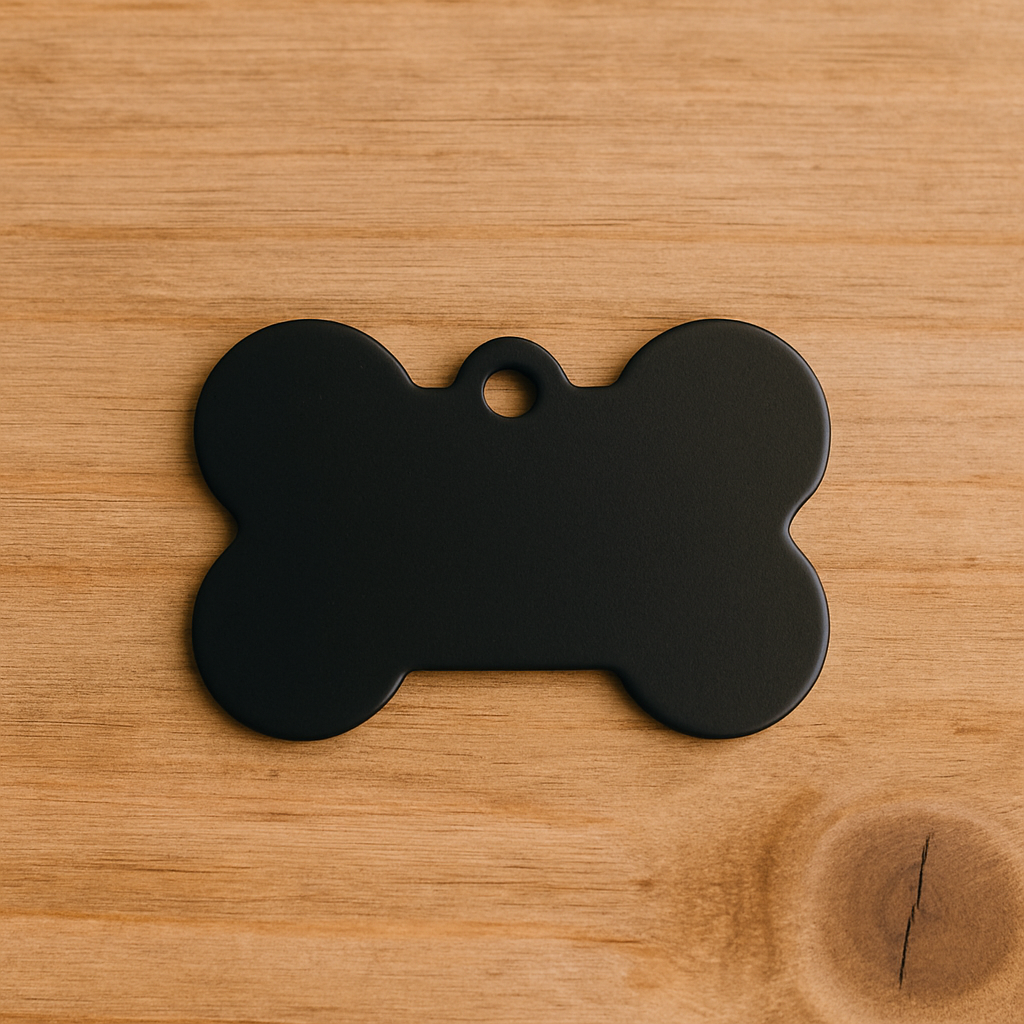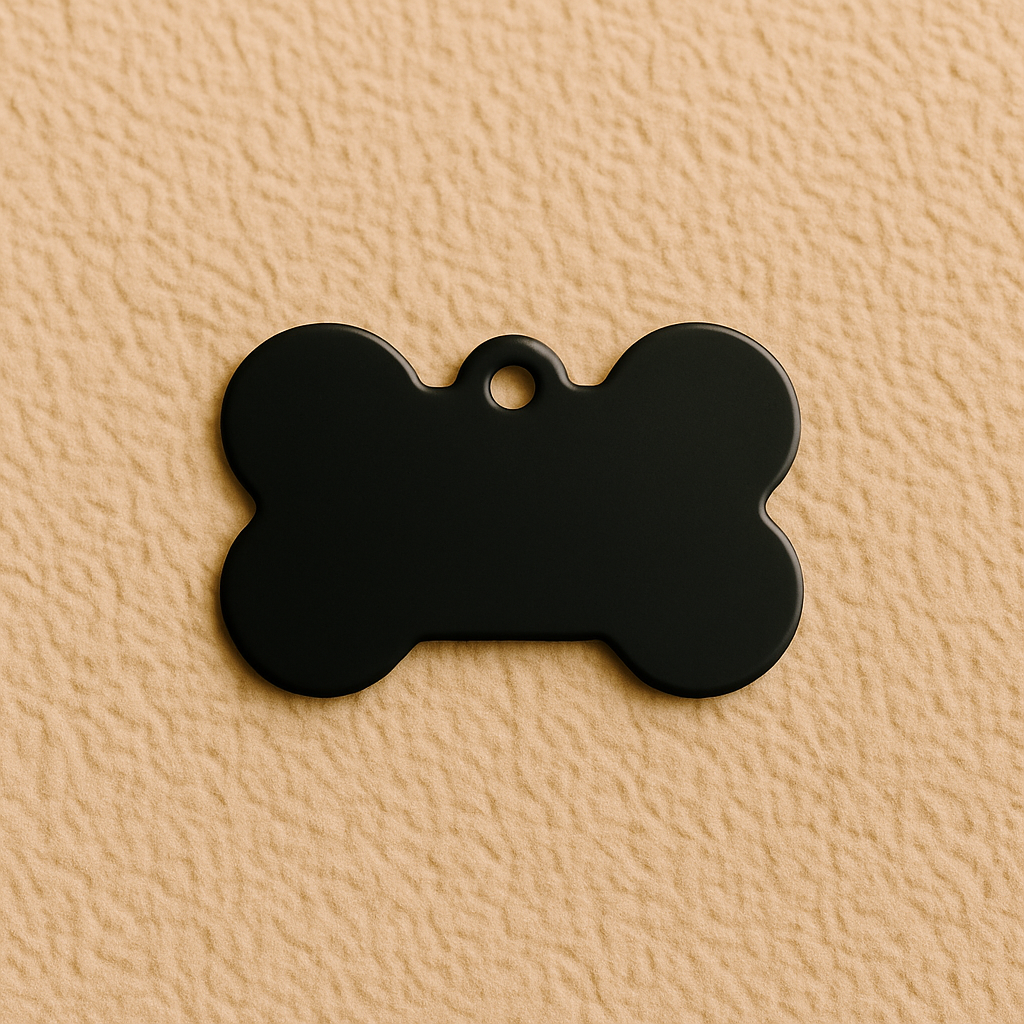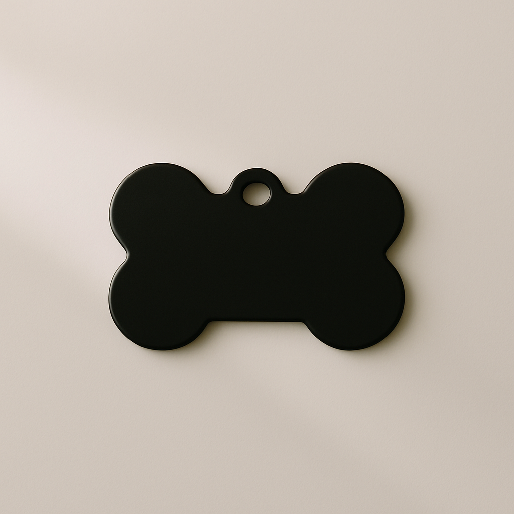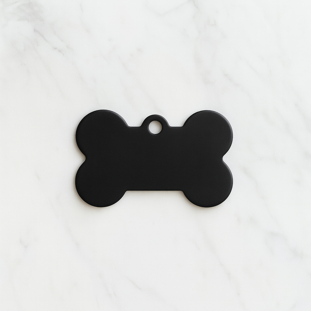 Make your pet stand out with this sleek and durable Matte Black Bone Pet Tag – a bold choice for both cats and dogs. Crafted from lightweight anodized aluminum, this tag offers a clean and modern look while keeping your furry friend safe with custom engraving.