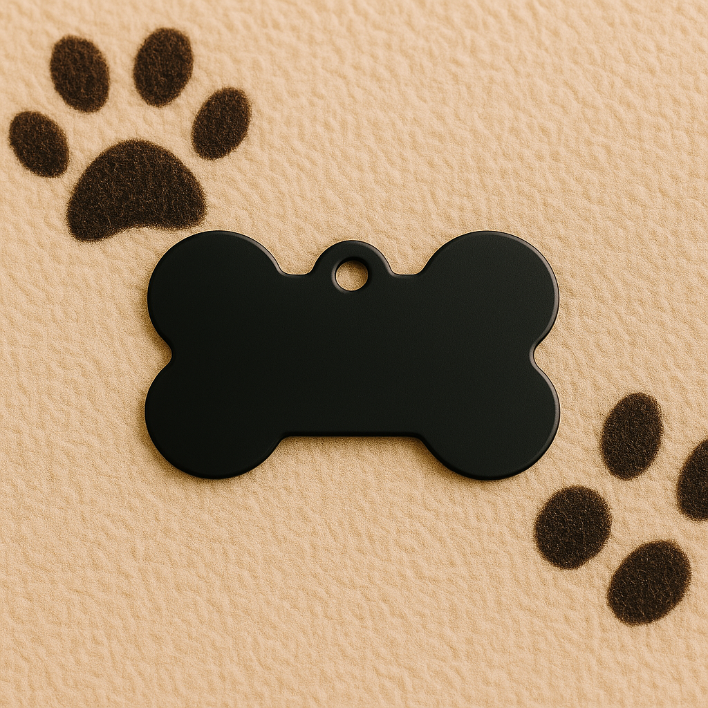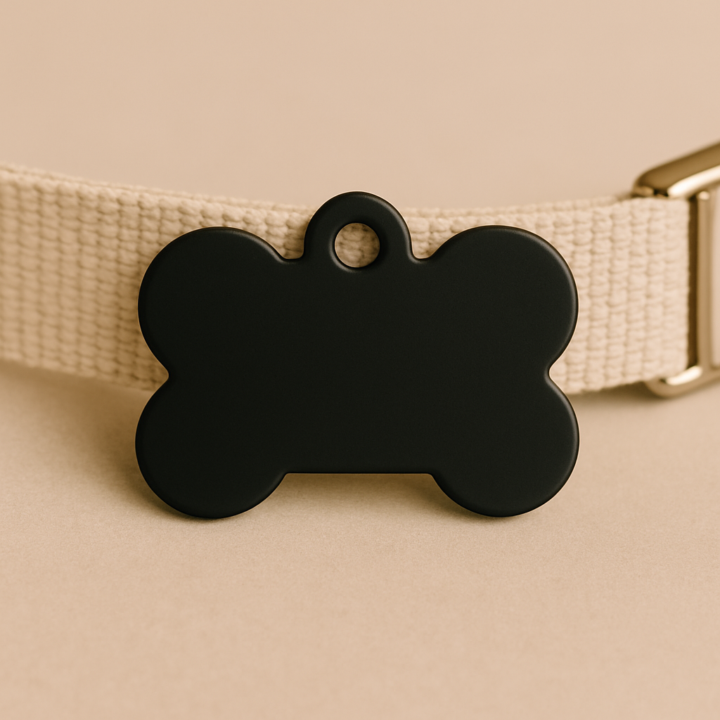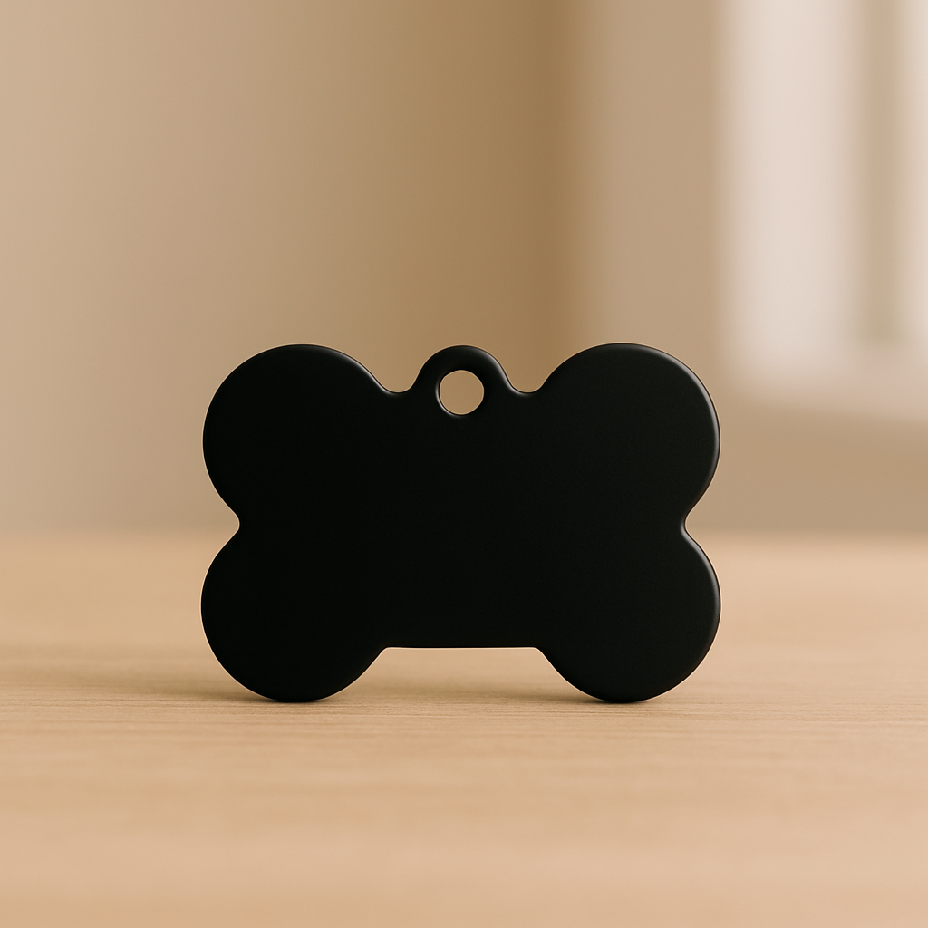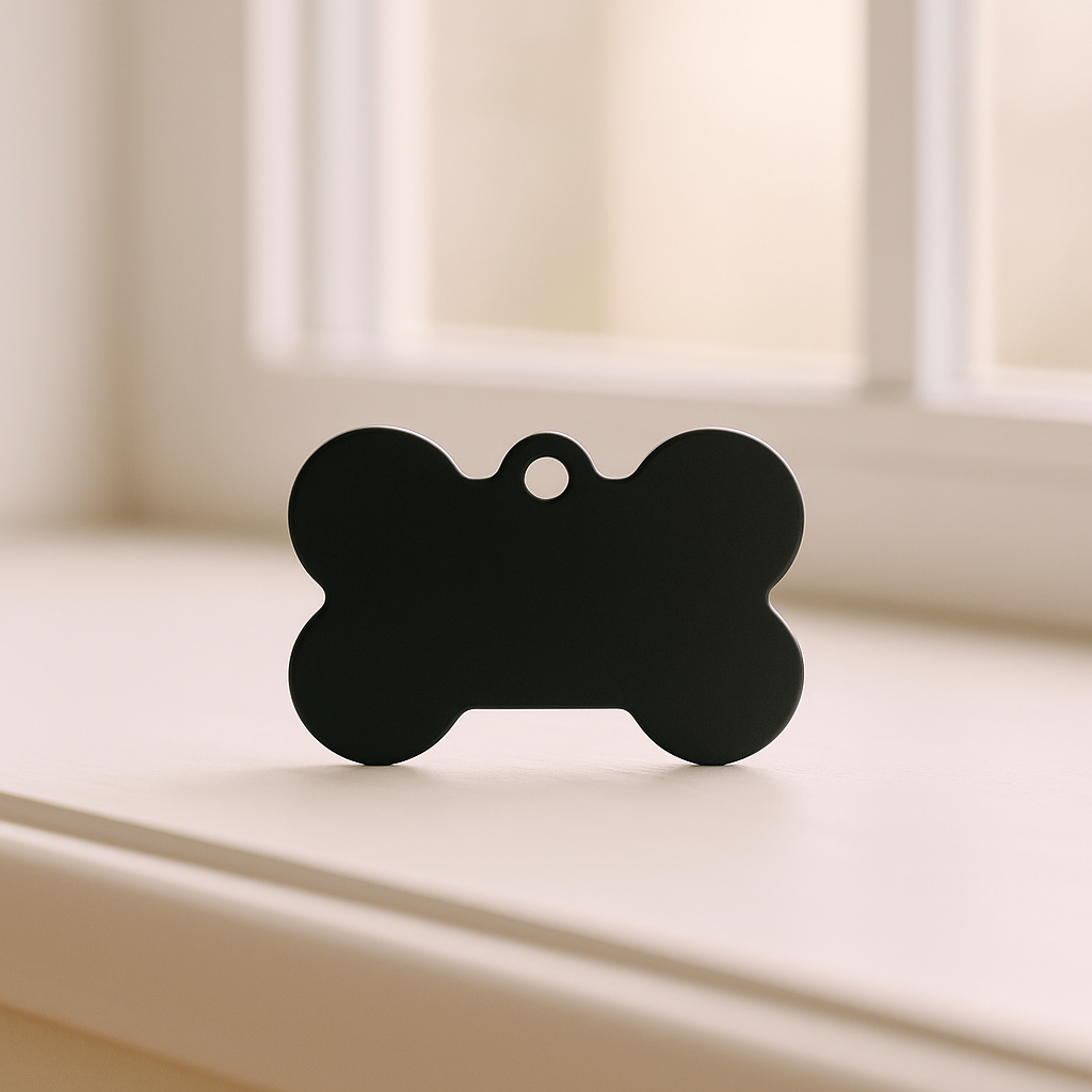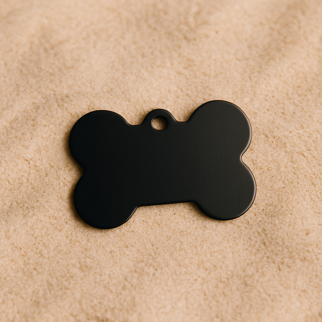 Make your pet stand out with this sleek and durable Matte Black Bone Pet Tag – a bold choice for both cats and dogs. Crafted from lightweight anodized aluminum, this tag offers a clean and modern look while keeping your furry friend safe with custom engraving.