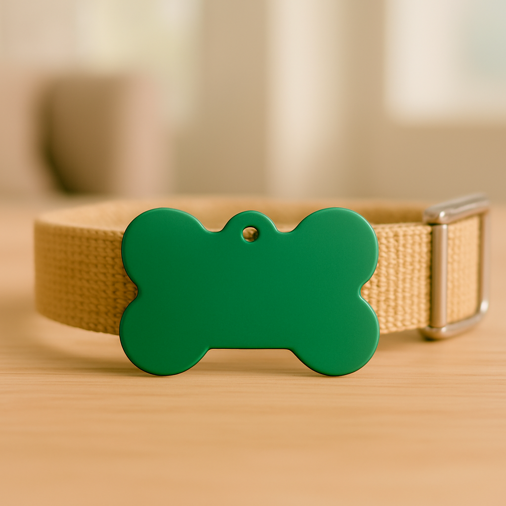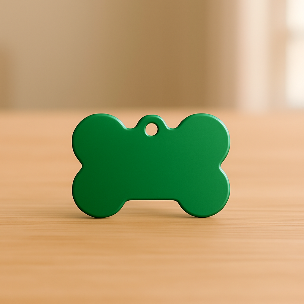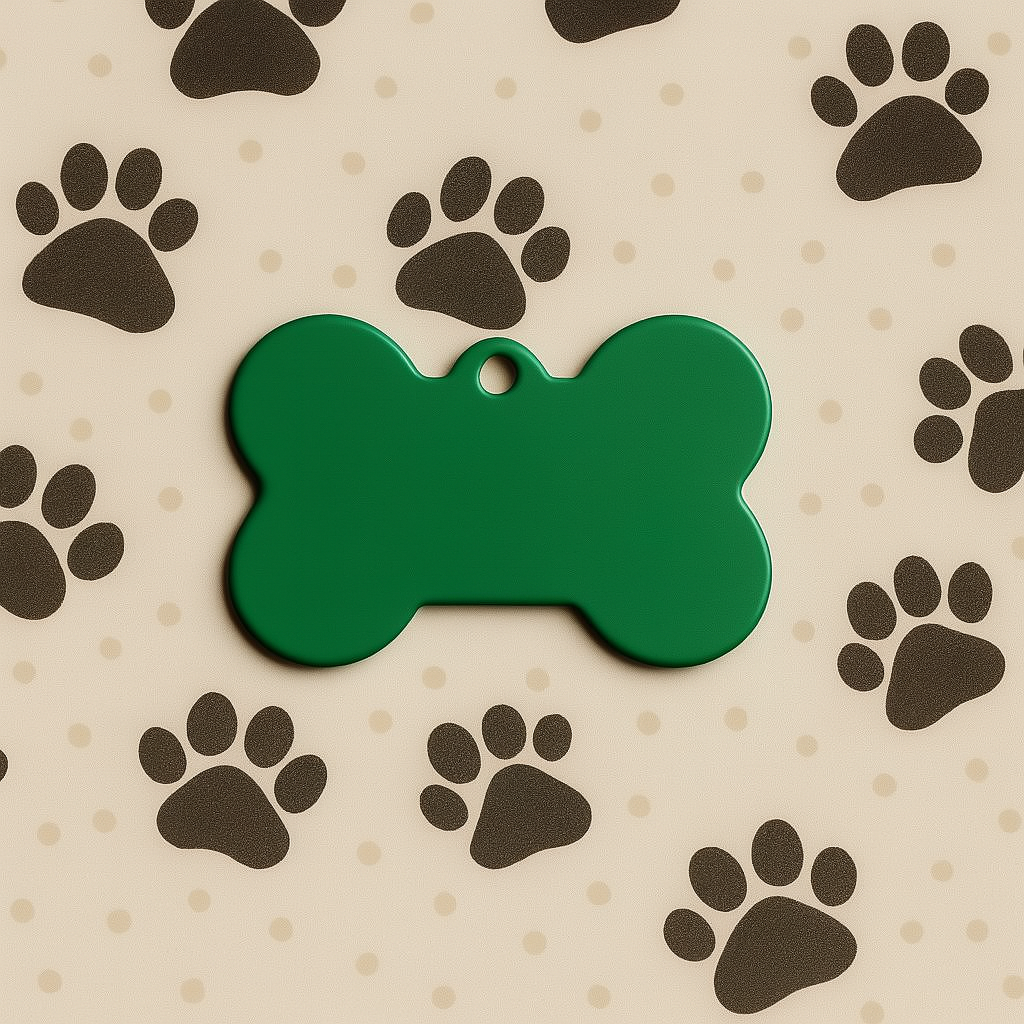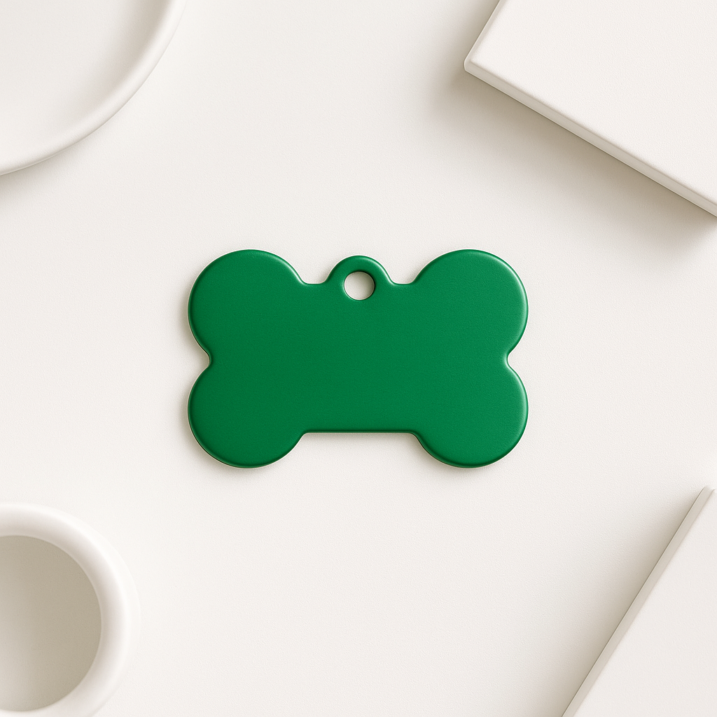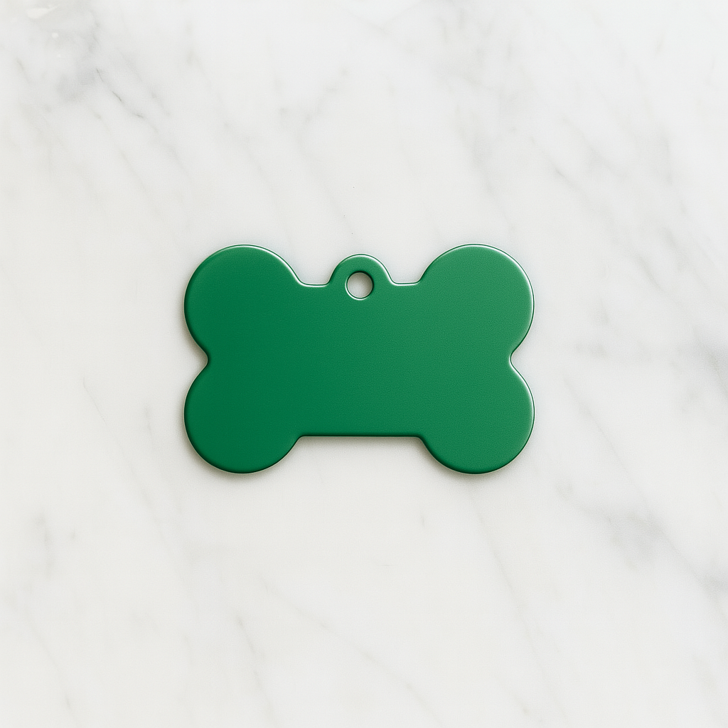 Keep your furry friend safe and stylish with this sleek Matte Green Bone Pet Tag. Crafted from durable anodized aluminum, it’s ideal for engraving your pet’s name and contact information. Designed for both cats and dogs, this tag blends function and flair with its bright green finish.