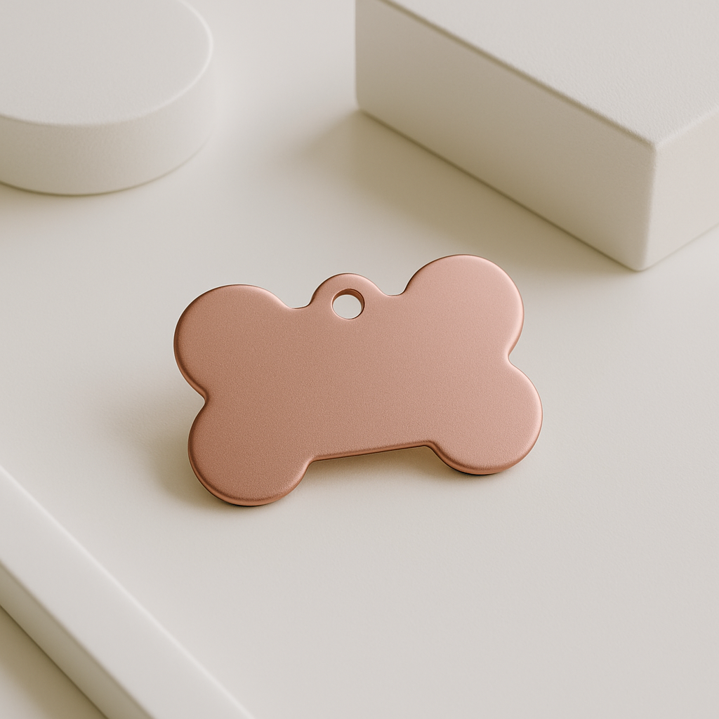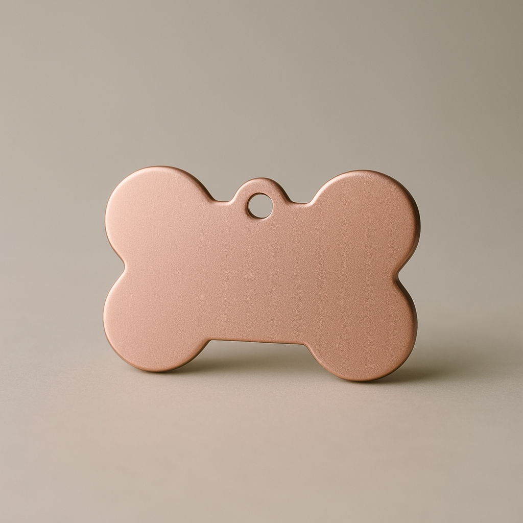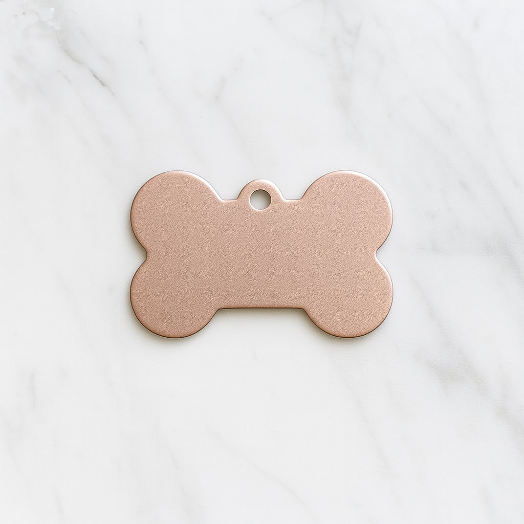 Add a touch of elegance to your pet’s collar with this Matte Rose Gold Bone Tag. Sleek, lightweight, and made from high-quality aluminum, it’s designed to be engraved with your pet’s name and your contact details—keeping your furry friend stylish and safe.
