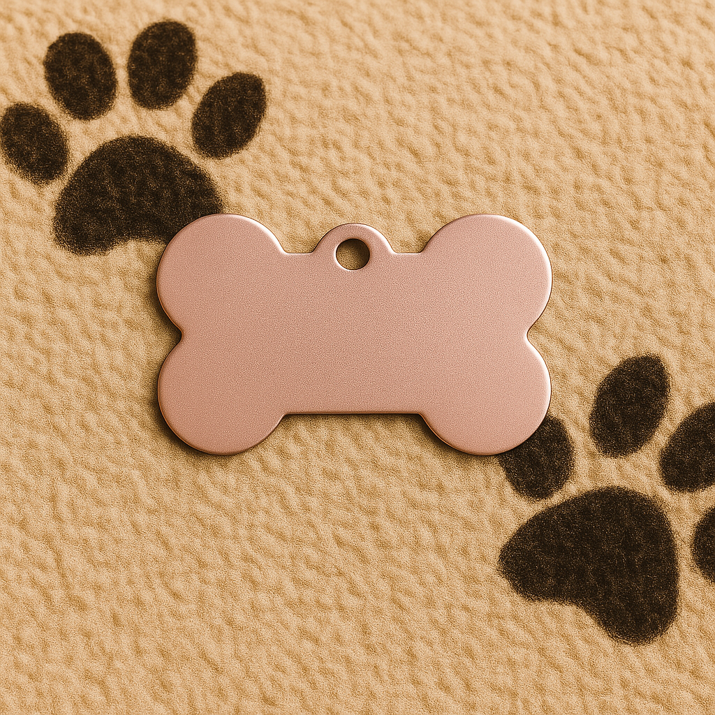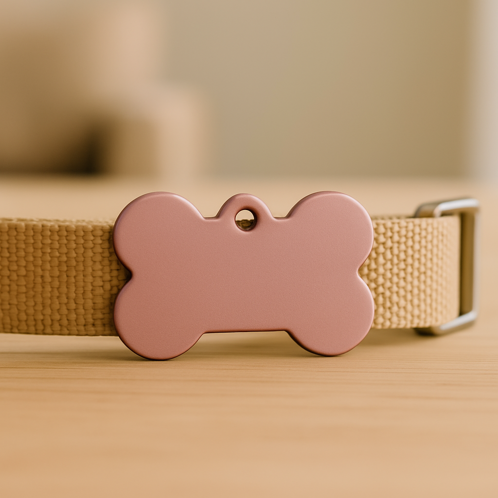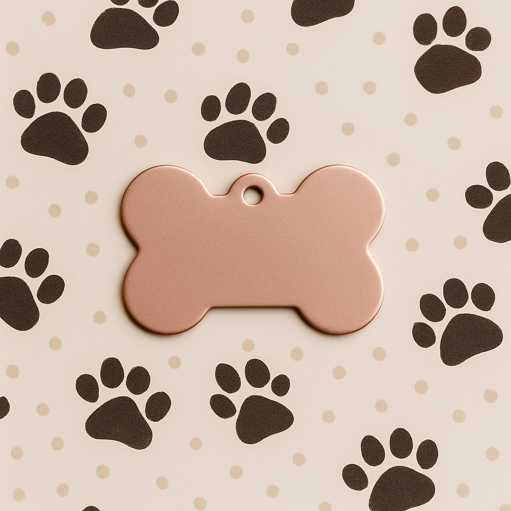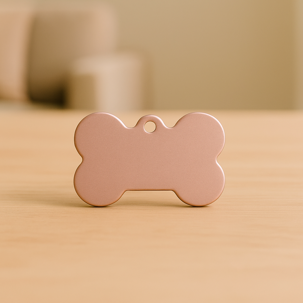 Add a touch of elegance to your pet’s collar with this Matte Rose Gold Bone Tag. Sleek, lightweight, and made from high-quality aluminum, it’s designed to be engraved with your pet’s name and your contact details—keeping your furry friend stylish and safe.