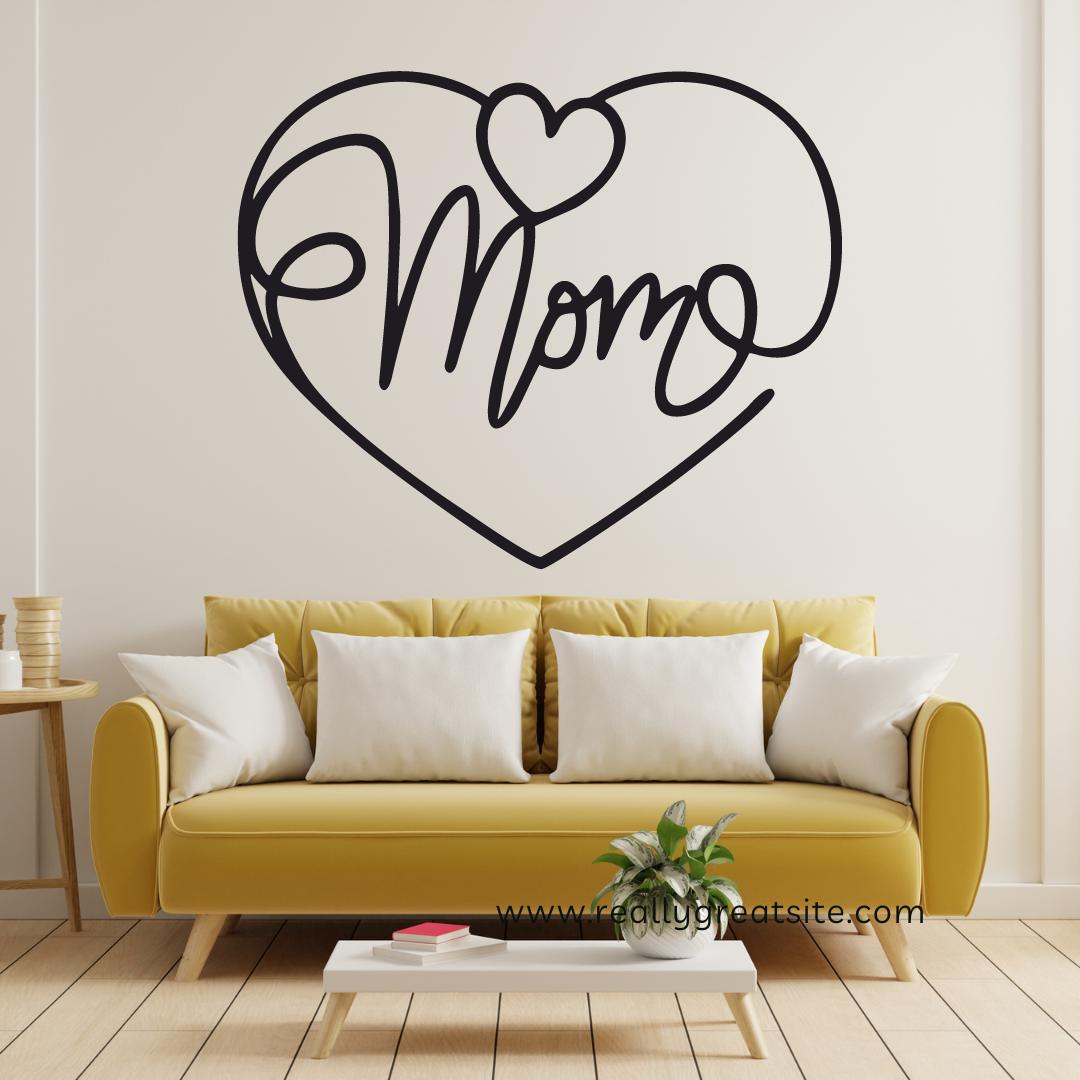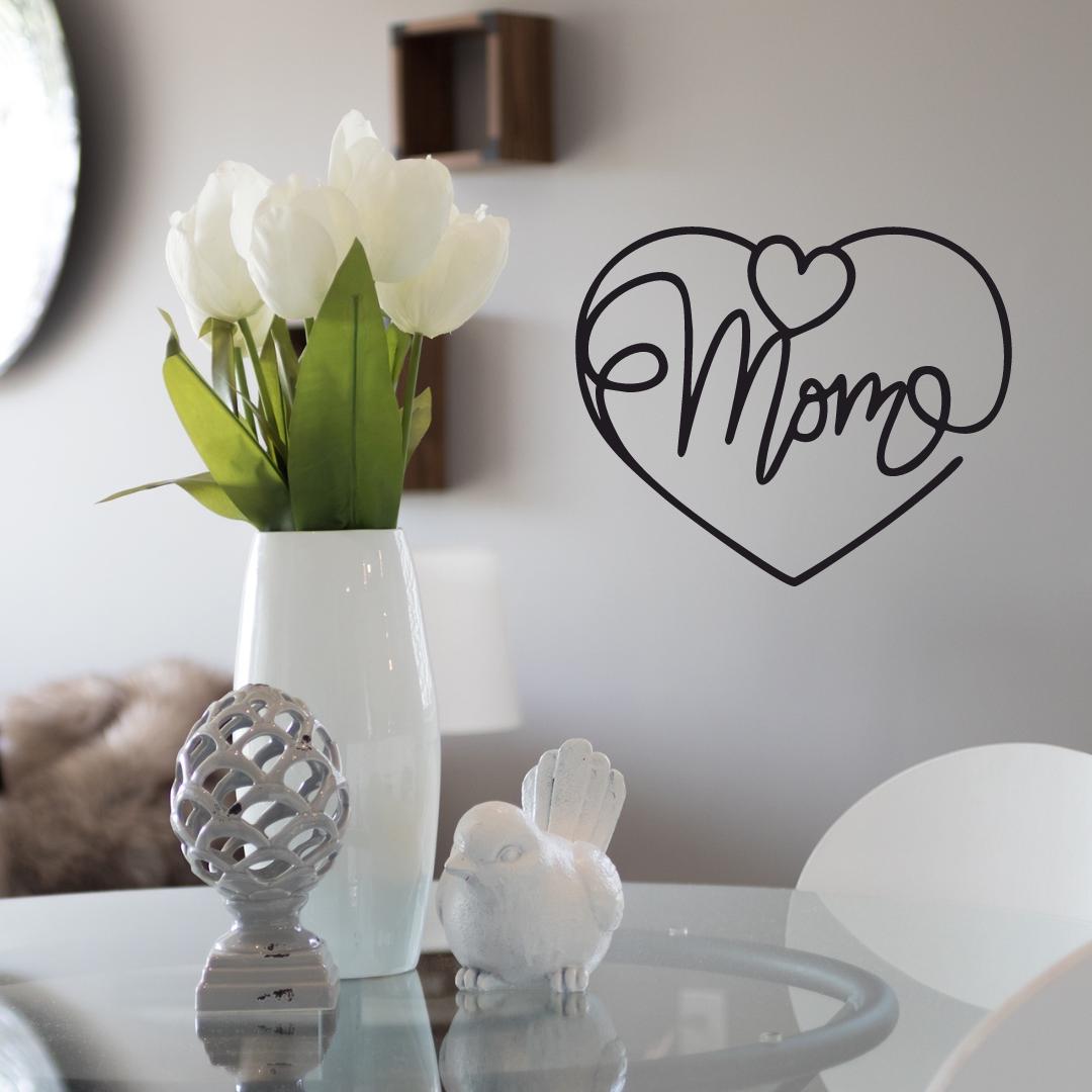 Design: Elegant cursive “Mom” inside a heart outline, with a small heart accent at the top