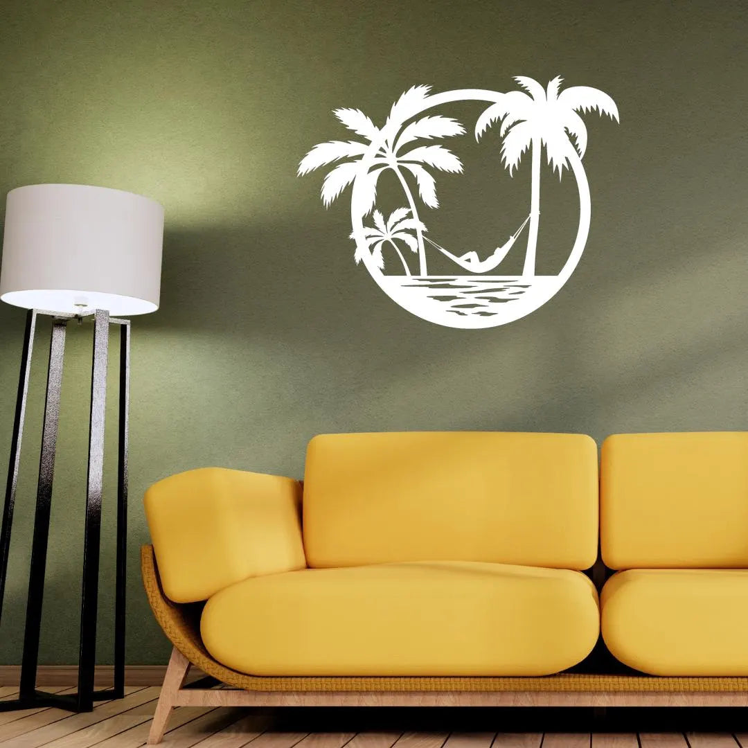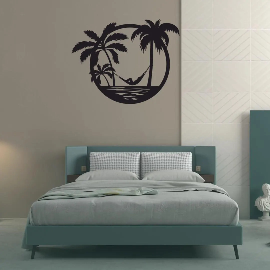 Escape to paradise with Palm Tree Beach Wall Art Acrylic, a laser-cut acrylic wall hanging showcasing a serene hammock scene framed by tall palm trees over a tranquil shoreline. Crafted in New Zealand by Bhavya Phull from premium 3 mm gloss acrylic, this “beach wall art” piece brings “tropical decor” vibes and “relaxation wall décor” flair to any living room, bedroom, or home office. Perfect for coastal-themed interiors and a thoughtful “gift for beach lovers.”