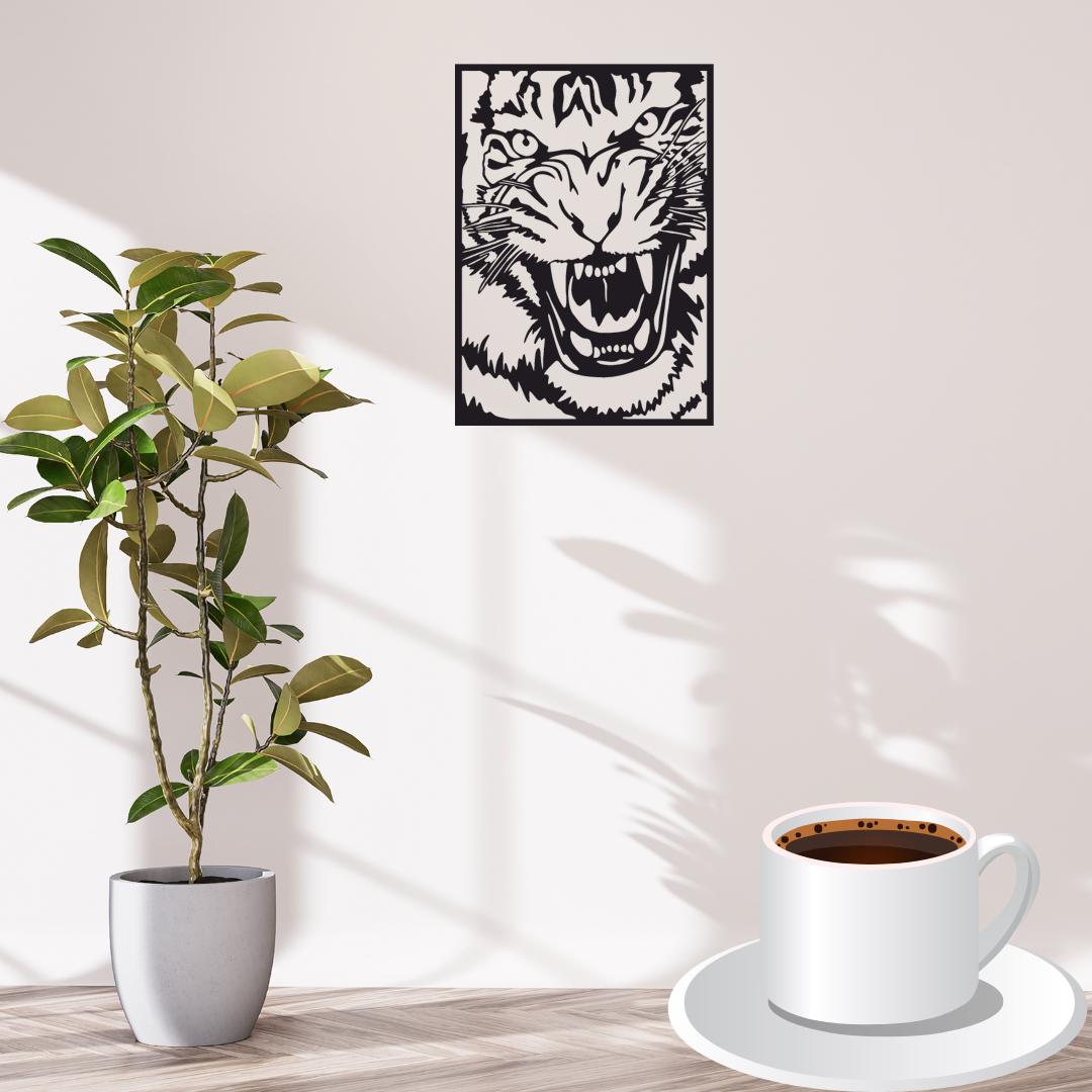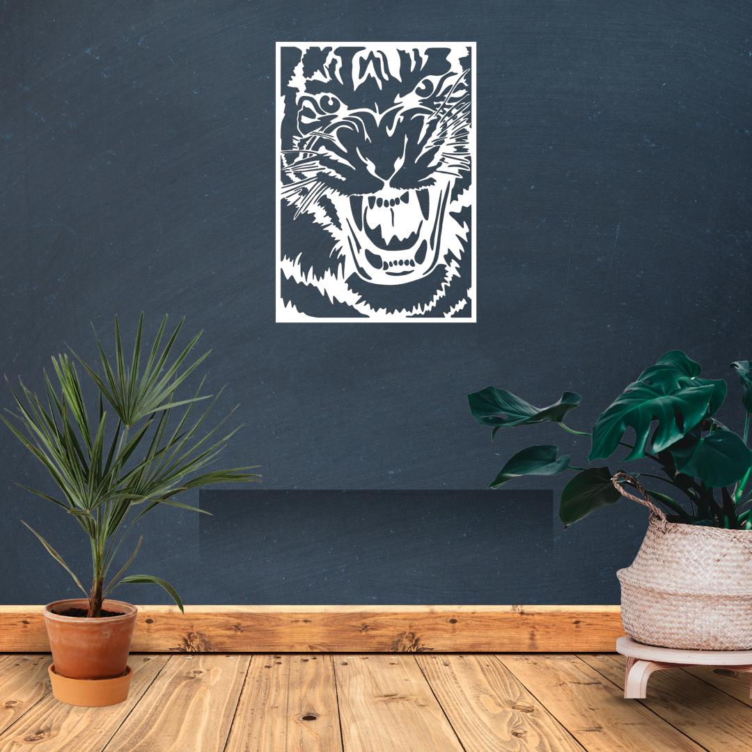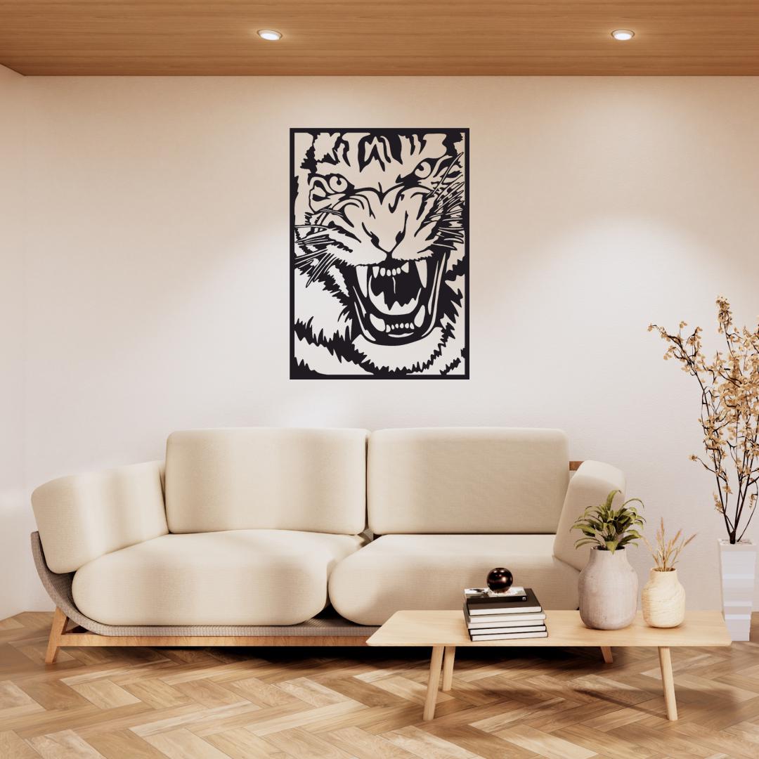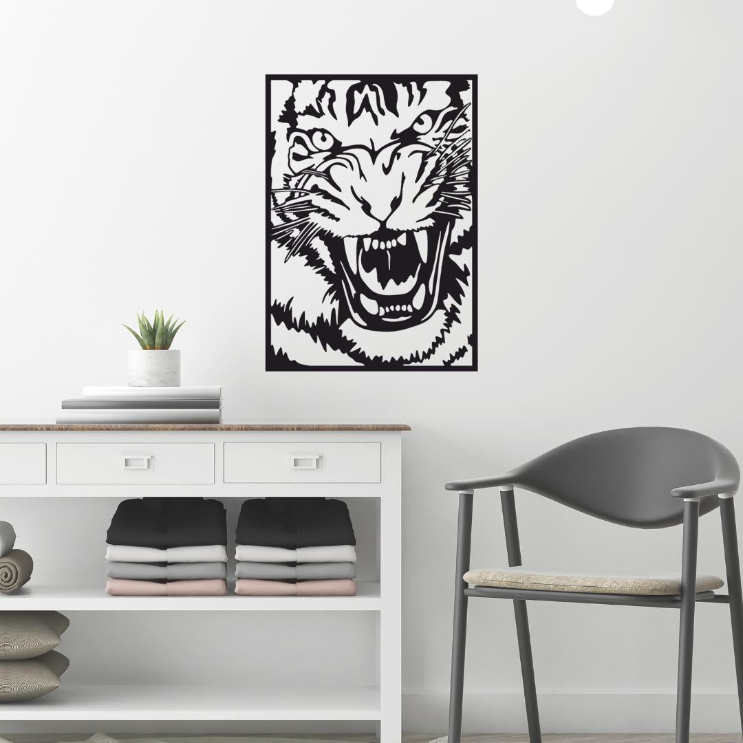 Design: Detailed roaring tiger head within a clean rectangular frame for a bold, “jungle-inspired” focal point