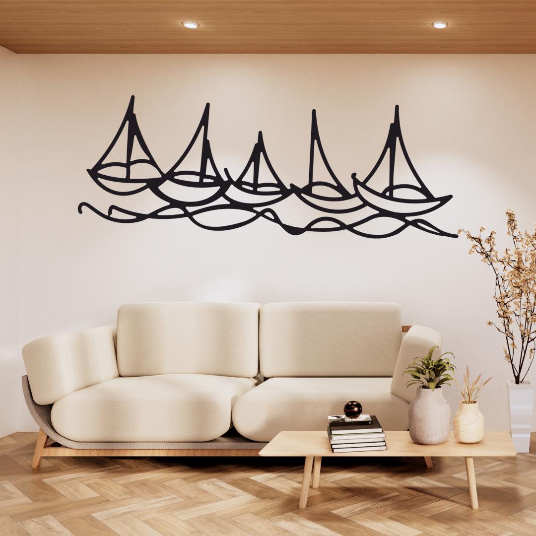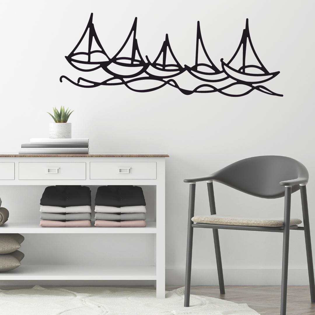 Designed as a single flowing silhouette, this artwork suits living rooms, beach houses, bathrooms, or modern nautical interiors.