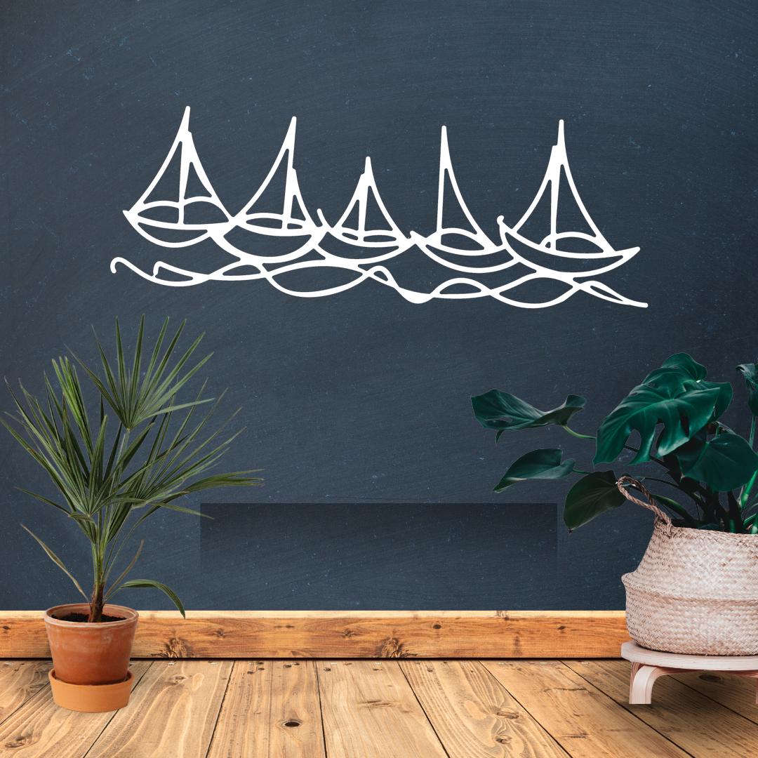 Bring the calm of the sea indoors with this elegant Sailboat Line Art Wall Decor. Featuring five stylized boats sailing across gentle waves, this piece is laser cut from 3mm gloss acrylic to deliver minimalist charm with a coastal vibe.