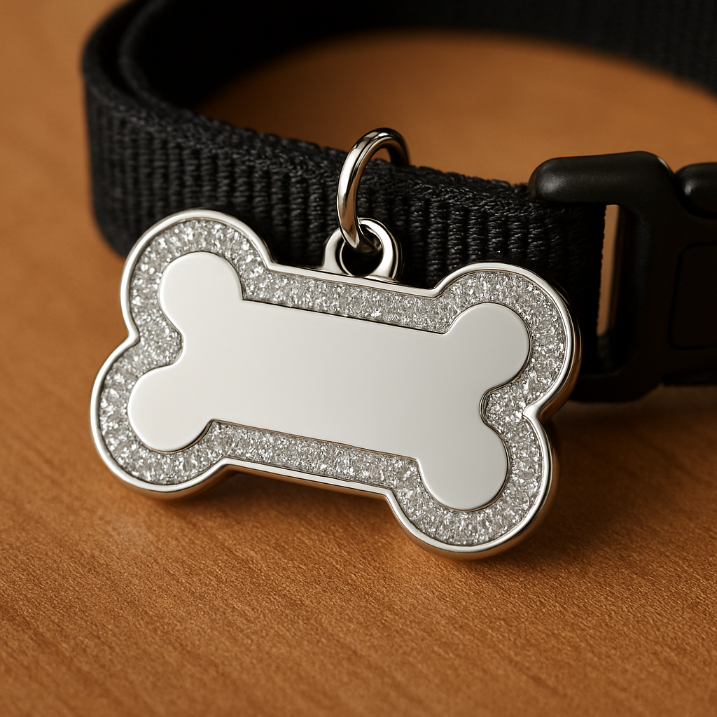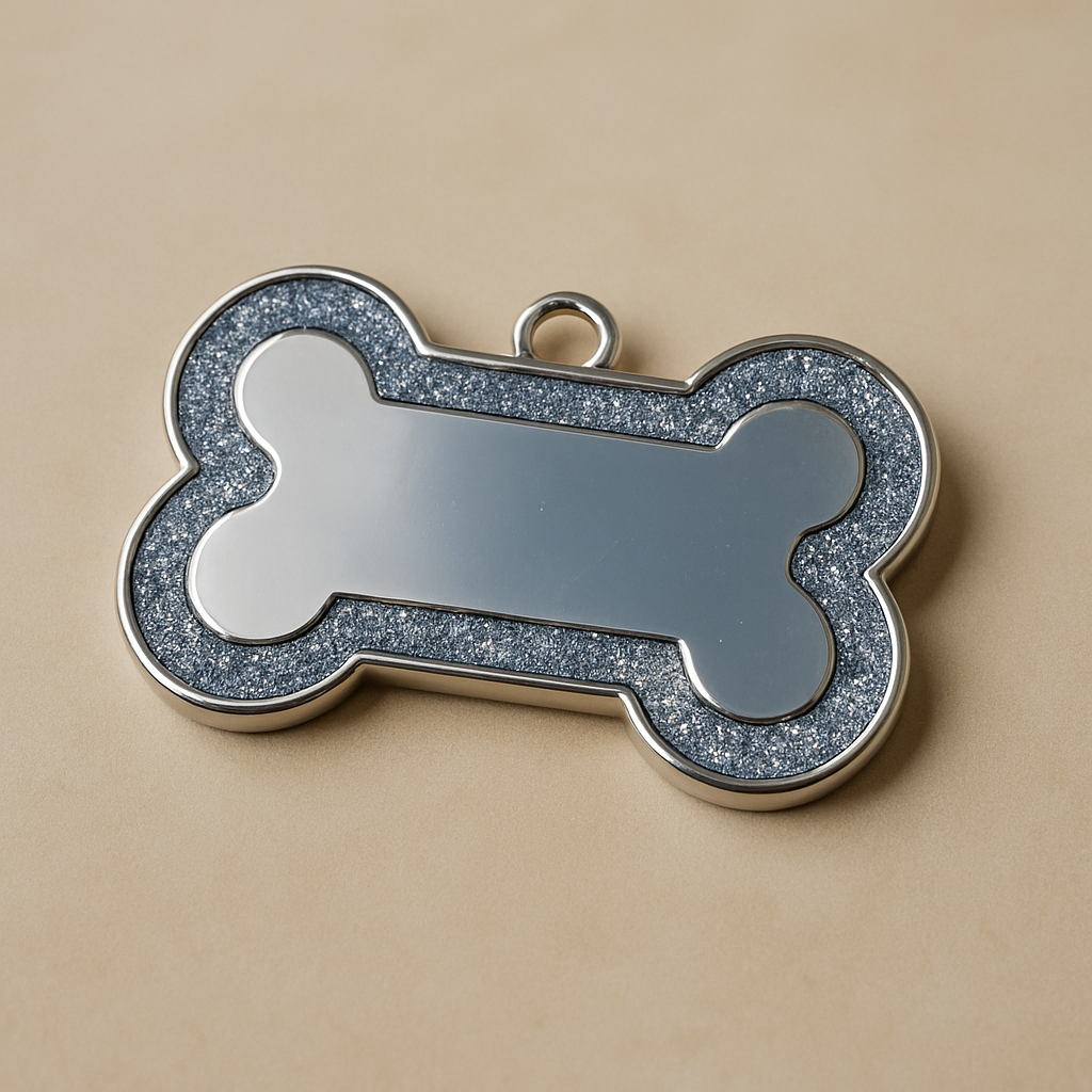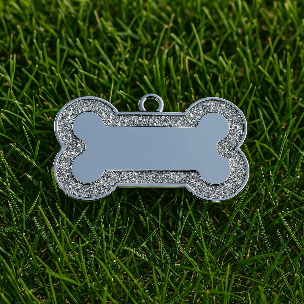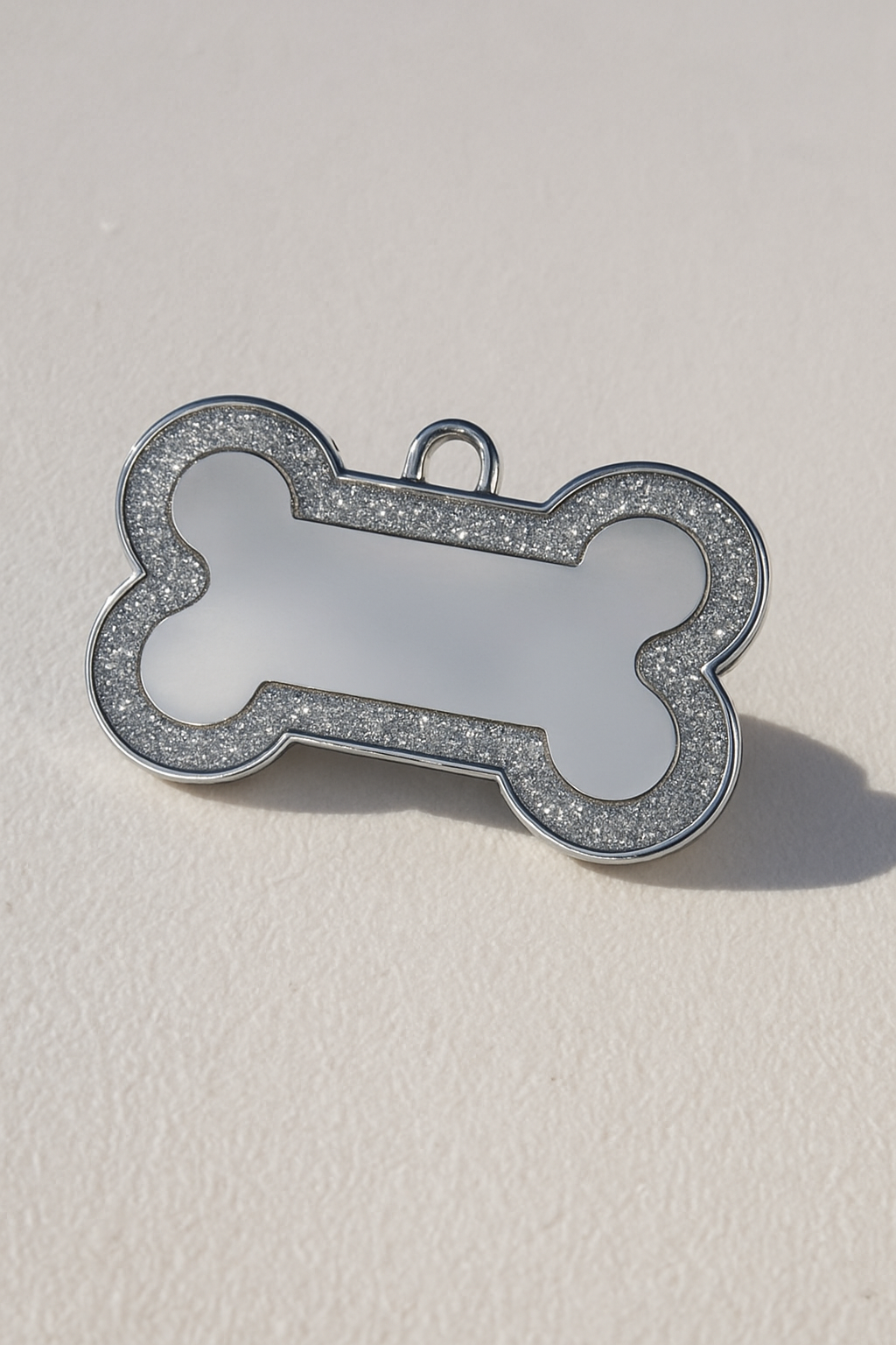 Add a touch of sparkle to your pet’s everyday style with this Silver Glitter Bone Pet Tag. Designed for both cats and dogs, this dazzling bone-shaped tag combines durability with elegance, making it a must-have for pet lovers.