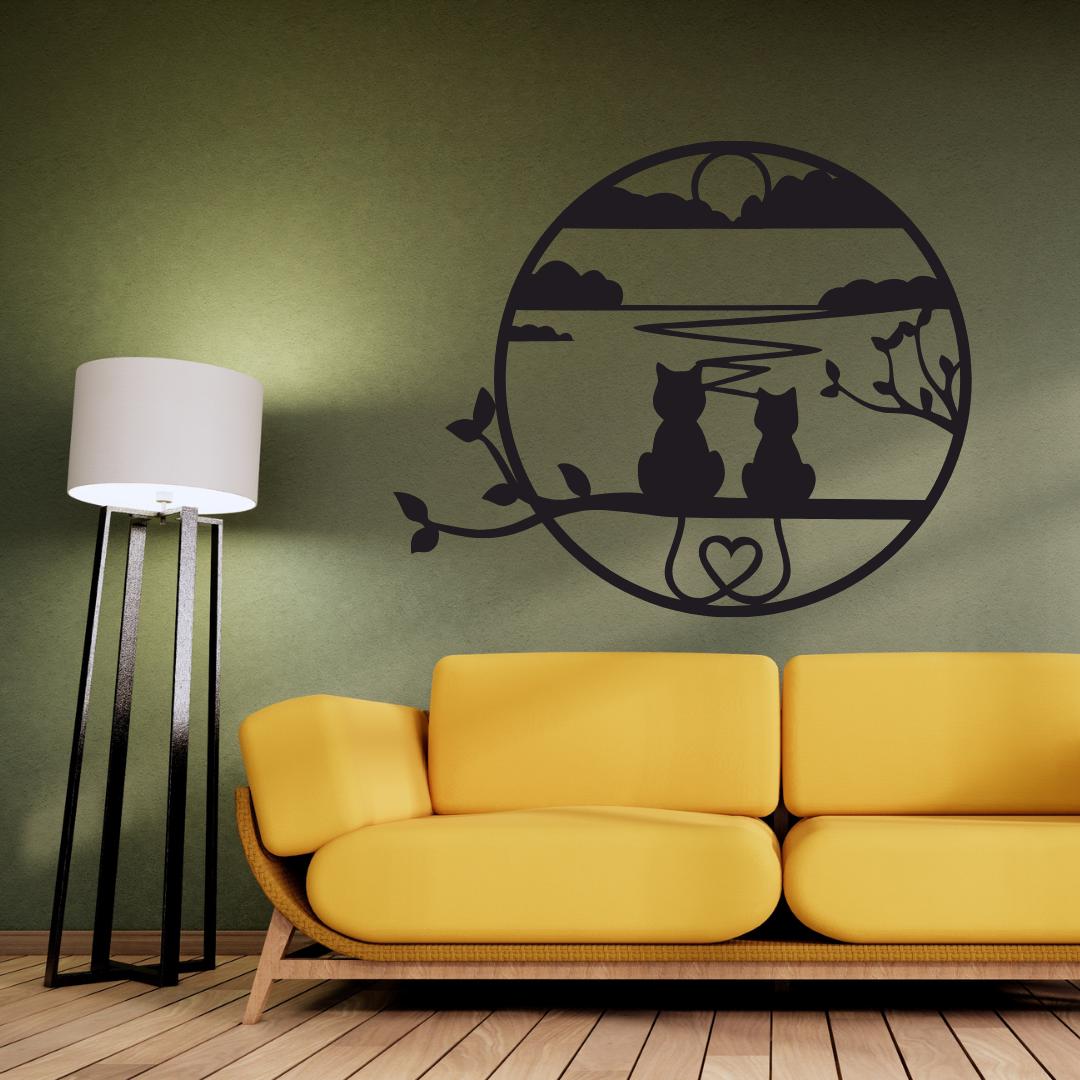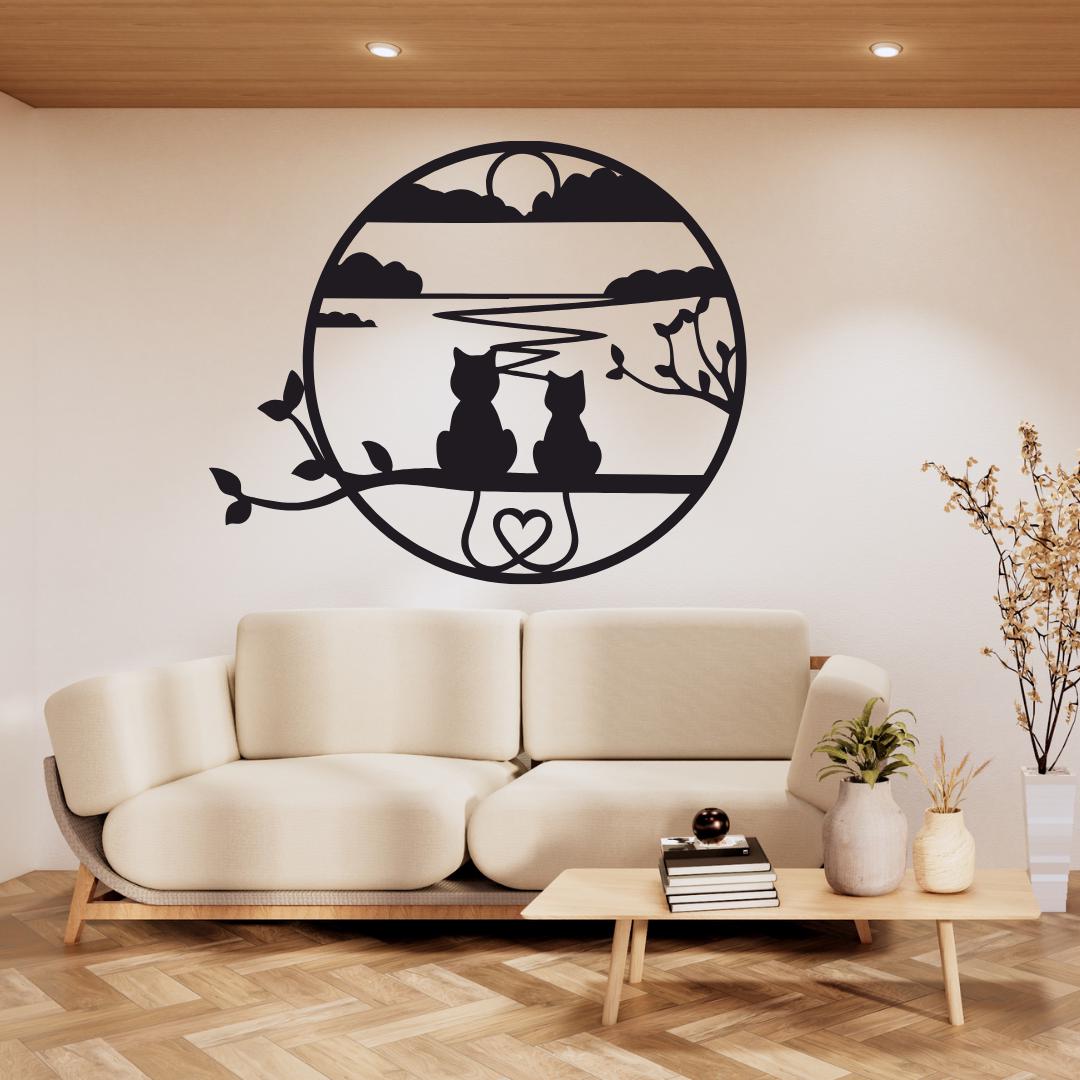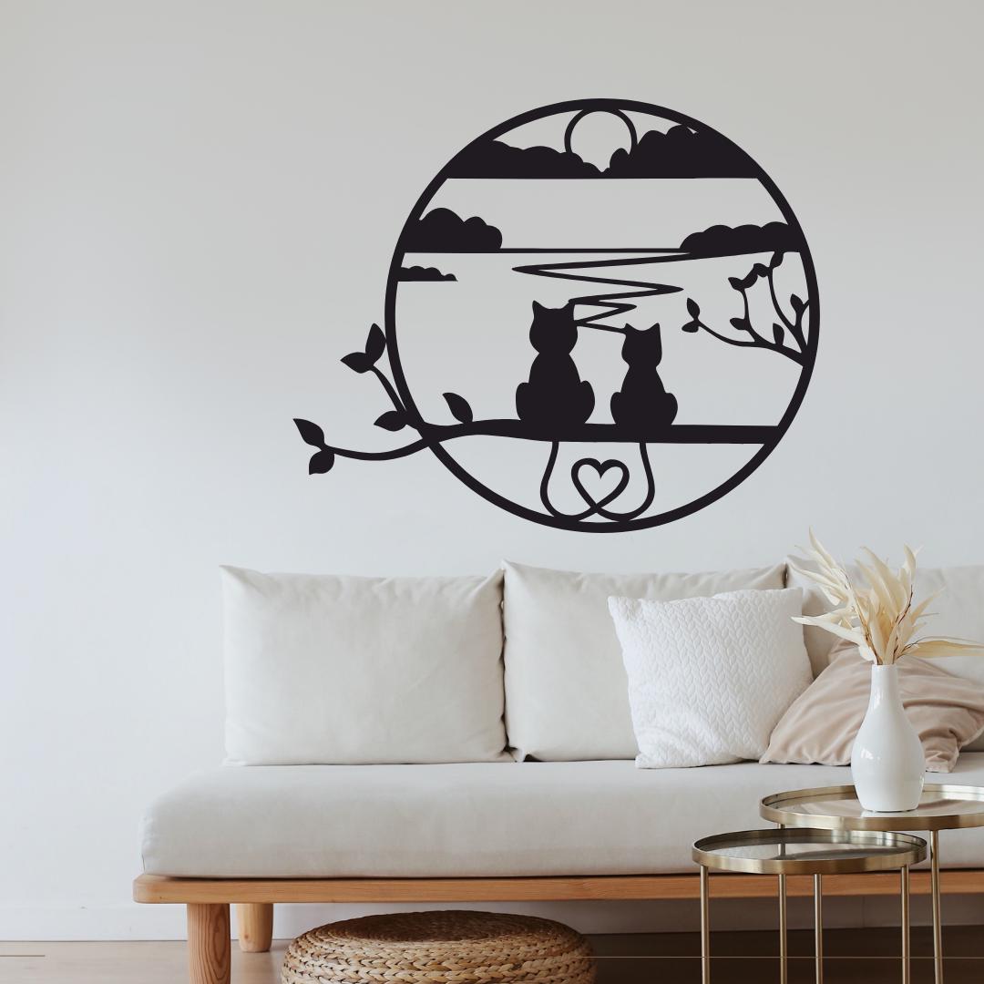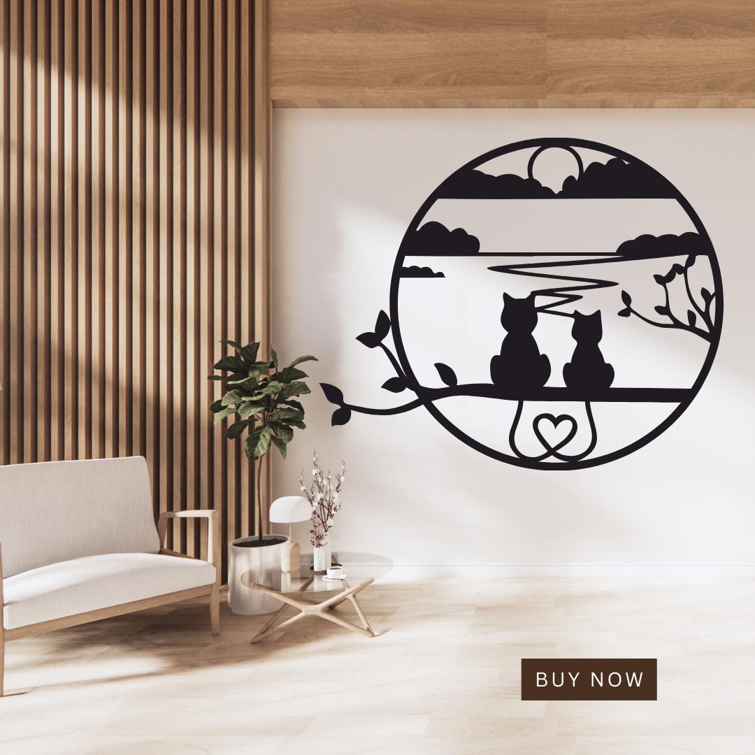 Capture a serene moment with Sunset Cats in Circle Acrylic Wall Art, a precision laser-cut acrylic hanging featuring two cat silhouettes gazing over a tranquil lakeside sunset, framed by graceful branches and a heart motif. Crafted from premium 3 mm gloss acrylic in New Zealand by Bhavya Phull, this “cat wall art” piece brings “romantic nature décor” flair to living rooms, bedrooms, nurseries, or home offices. Ideal as a gift for cat lovers, anniversary décor, or whimsical home accent that celebrates companionship and calm.