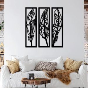 Minimalist Feather Wall Art Triptych – Modern Boho Acrylic Decor NZ